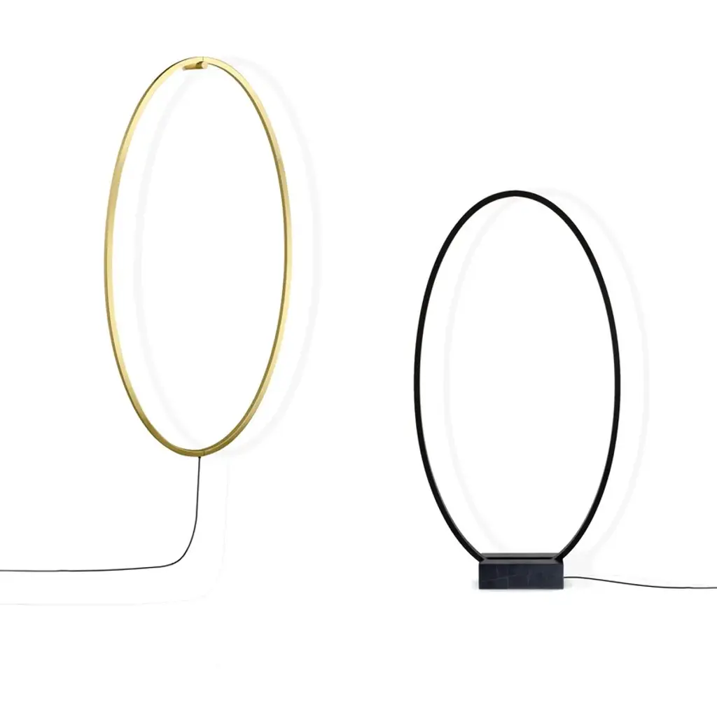 Source: linear LEDTotal power: 66WEmission: diffused orientableSwitching: dimmableTension: 110/230VColor temperature: 2700KLuminous flux: 3450lm (luminous output)Typ cri 85Energy class: A+Materials: AluminiumNotes:orientable, dimmer on cable, base to be ordered separately, cable lenght 5mAccessories : Base, black marquinia marbleCodeELP LNN 21 - blackELP LGN 21 - gold polished anodizedCollection of LED suspension lamps in extruded aluminum made in different versions: minor, major, double and the new "oversize" triple, mega and double mega versions, for direct or indirect diffused light. Available in different finishes, matt painted in white, black and gold, natural polished and glossy gold anodized. Opal diffuser. Ellisse is realized through a proprietary technology of coupling of the extrusions. The model "Major" is also available floor and wall versions. LED lamp for wall and floor applications, with a marble base on the floor version and with a wall kit mounting on the wall one.