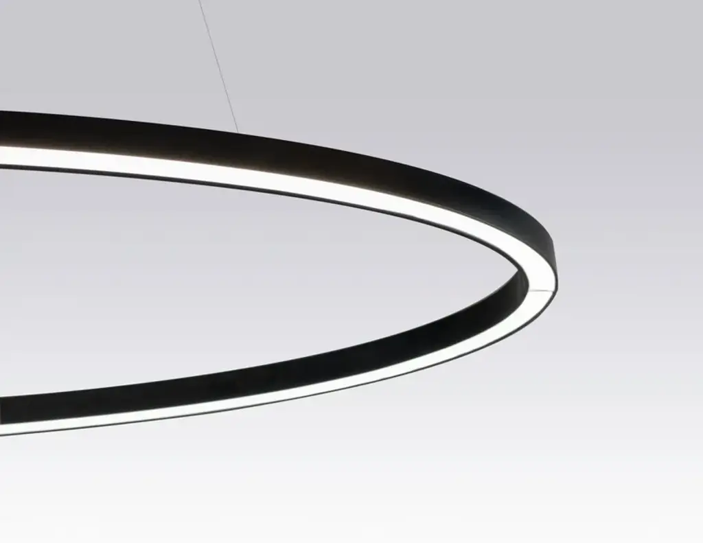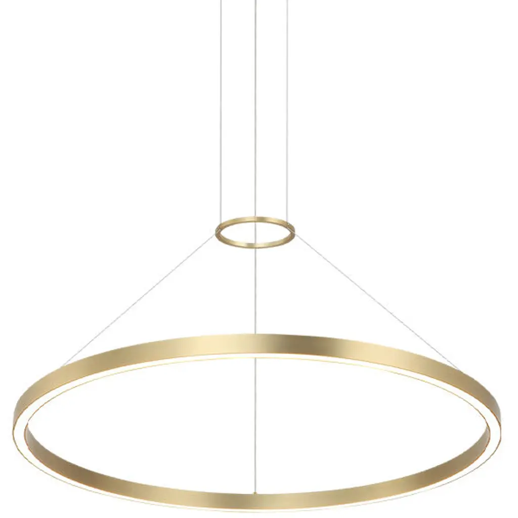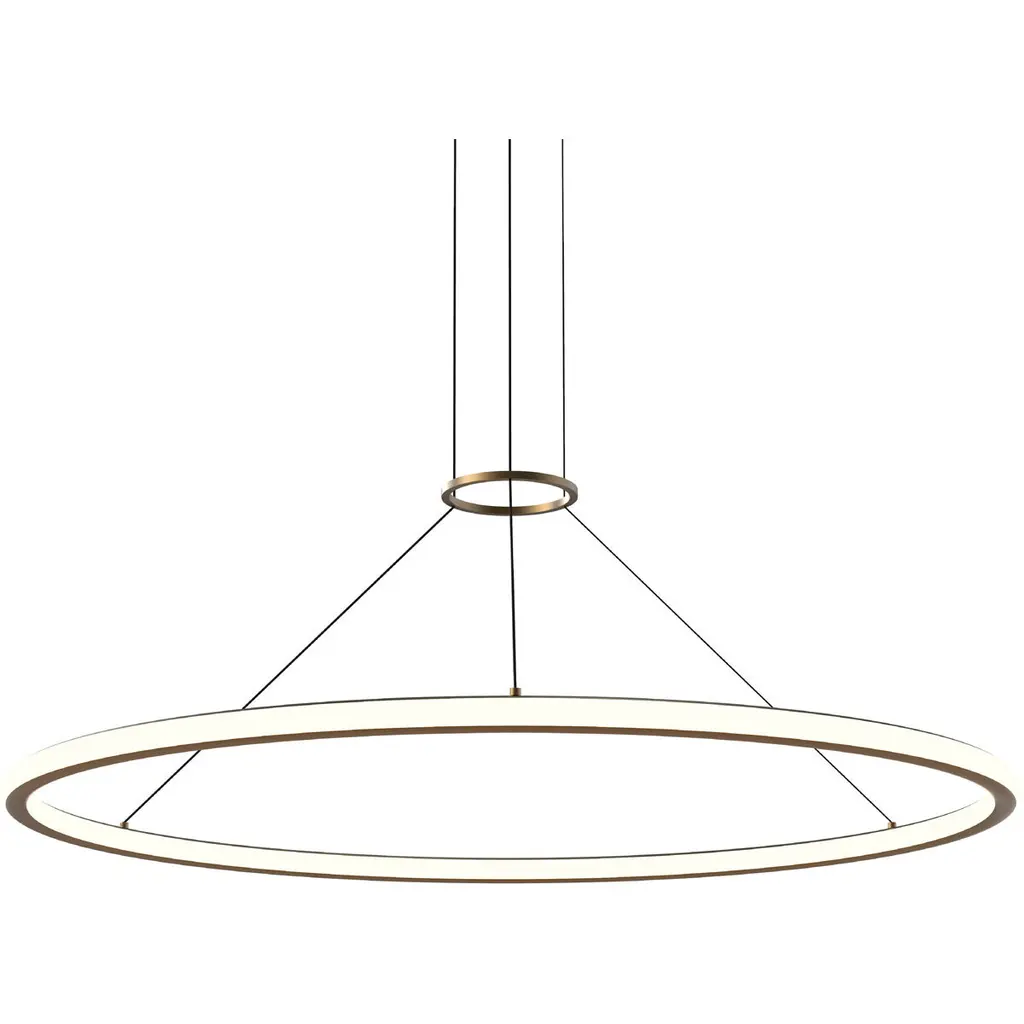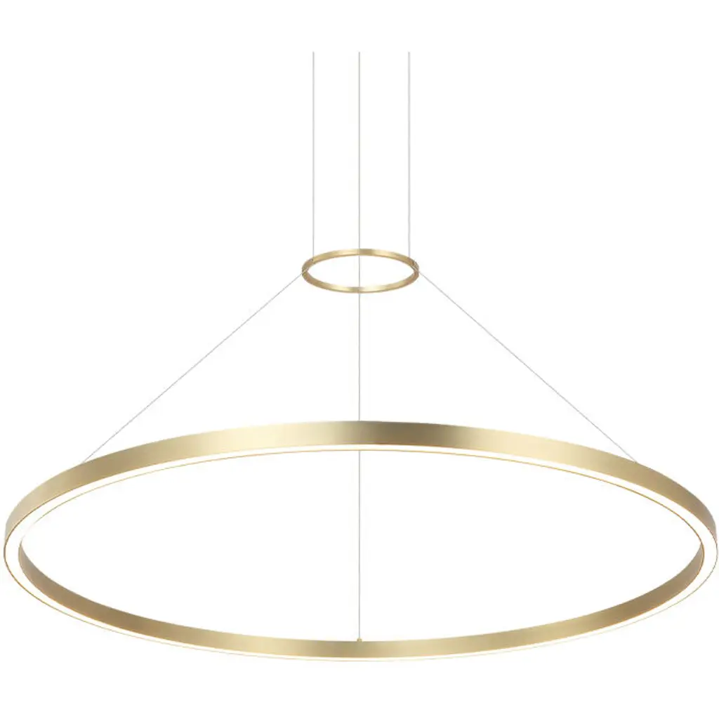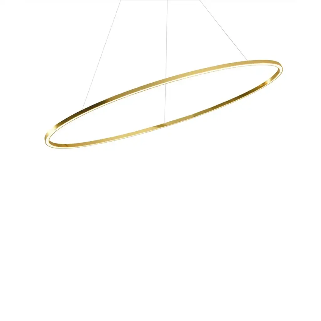 Ellisse Minor is a LED suspension lamp.Source: Linear LEDTotal power: 50 WEmission: Uplight and downlightSwitching: Dimmable, 1-10VTension 110 / 240 VColor temperature: 2700K / 3000KLuminous flux: 2825 + 1850lm (luminous output)Energy class A+Ip class 20Notes: cable length 2,5m, adjustable cable length minimum 0,4m, typ cri 85Collection of LED suspension lamps in extruded aluminum made in different versions: minor, major, double and the new "oversize" triple, mega and double mega versions, for direct or indirect diffused light. Available in different finishes, matt painted in white, black and gold, natural polished and glossy gold anodized. Opal diffuser. Ellisse is realized through a proprietary technology of coupling of the extrusions. The model "Major" is also available floor and wall versions. LED lamp for wall and floor applications, with a marble base on the floor version and with a wall kit mounting on the wall one.