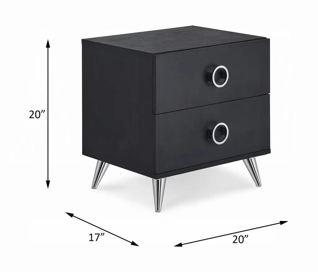 The Elms collection its classically beautiful and masterfully crafted, with contemporary style offers a timeless design that will last through the ages. The silver tapered legs and ring pulls pop against the black finish for a sophisticated, yet casual look fit for any bedroom. Some Assembly Required.