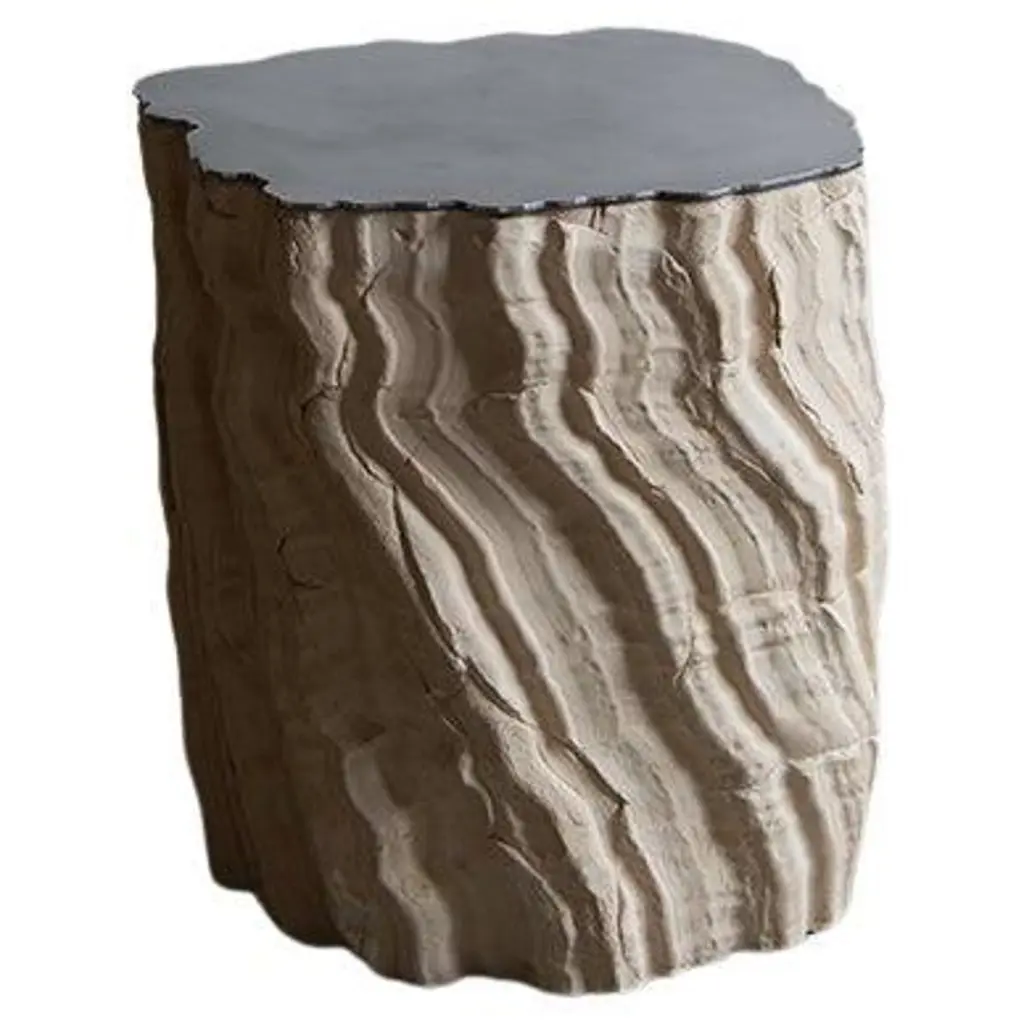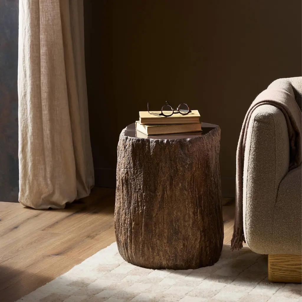 The Elun End Table is a stunning piece that brings the beauty of nature indoors. Crafted in a unique drum style, this end table is made from concrete that has been expertly textured to mimic the appearance of a tree trunk. The design features a smooth, high-polish top that elegantly contrasts with the heavily textured base, creating a harmonious balance. Perfectly sized, it provides a convenient spot to keep your favorite book or drink within easy reach, making it a functional and stylish addition to any living space.