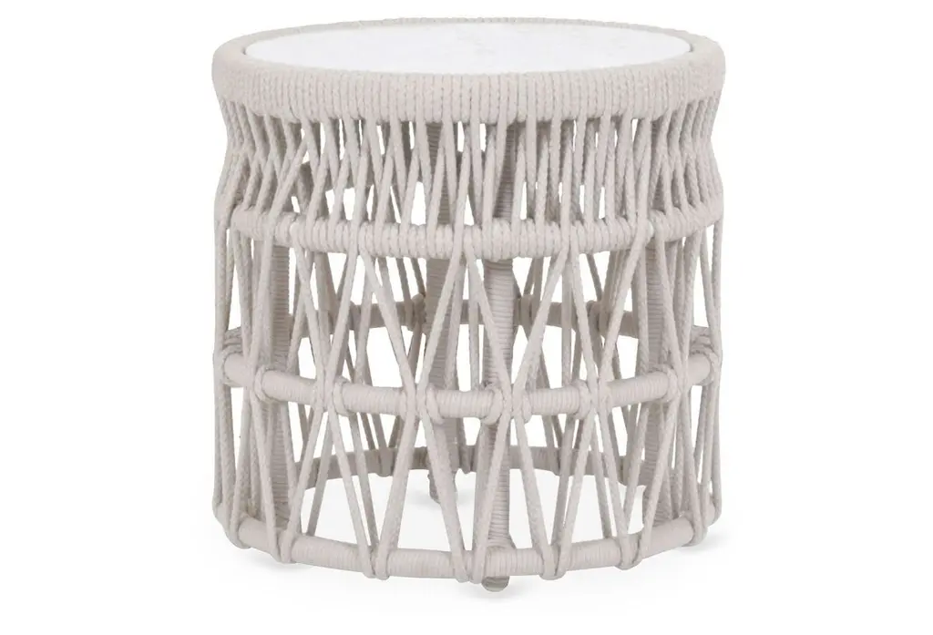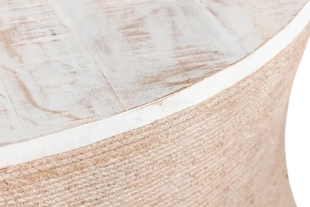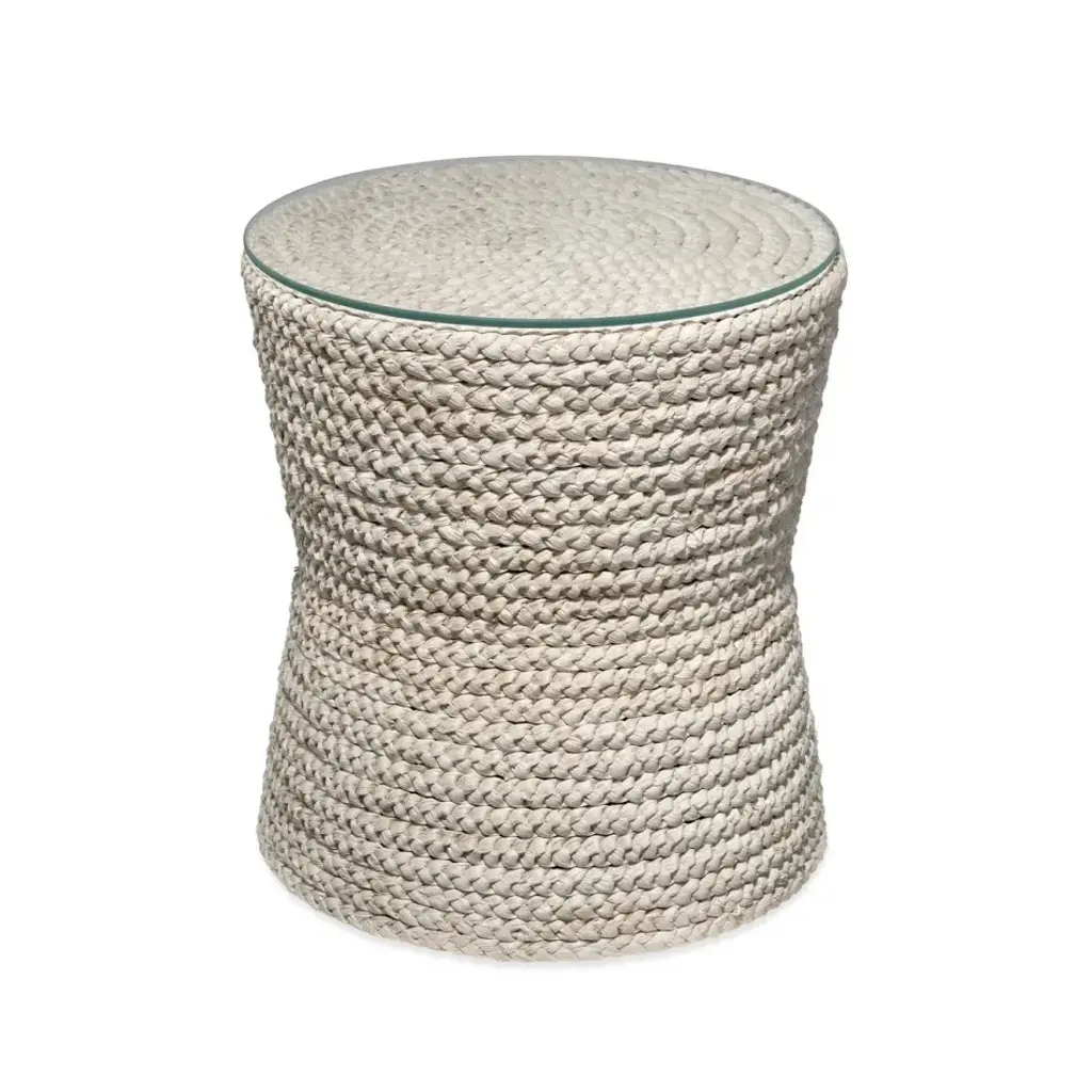 Earthy texture meets sculptural form in the organic beauty and bold craftsmanship of the Elysium end table. Featuring a gracefully tapered iron base wrapped in hand-applied natural jute, this piece's silhouette is shaped with striking curvature and artisanal texture. A true statement in transitional style, the warm, woven base contrasts beautifully with a smooth top finished in a natural tone, bringing rich character to coastal, bohemian, or modern organic interiors.
