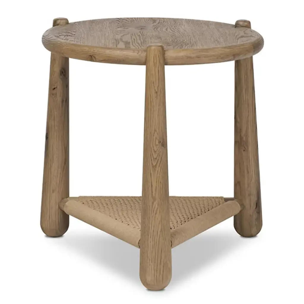 Em Wabi-Sabi Rustic Round Three-Legged Reclaimed Wood Side Table