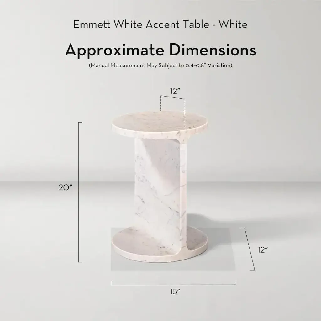 The Emmett White Accent Table is a celebration of timeless beauty. Sculpted from a single block of white marble, it showcases the material’s natural elegance and strength. A true conversation starter, it’s as functional as it is artistic.Cusiom Orders: Custom furniture is manufaciured especially for you, which is why we do not accept cancellations, exchanges, or return.