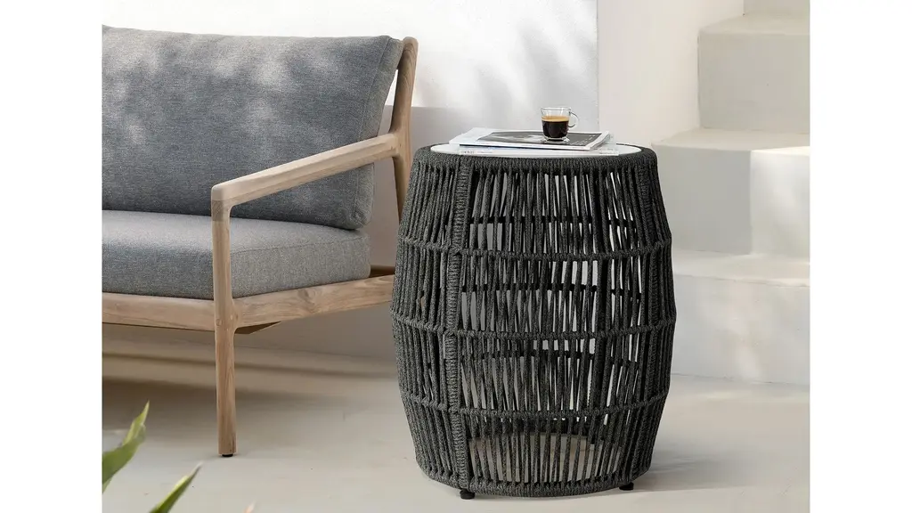Enjoy the endless applications of the Emory Garden End Table from Armen Living. Constructed from steel, wrapped in resilient and weather resistant rope and topped with smooth super stone, the Emory is stylish as it is functional. The stone top features a 5-layer composite with 2 layers of cement fiberboard surrounding the aluminum honeycomb core. The smooth stone is durable and robust - capable of withstanding inclement weather and everyday wear and tear. The steel frame is incredibly durable as steel does not dent or get bent out of shape as easily as some aluminum furnishings can. Lighter than wrought iron but heavier than aluminum, steel provides strength, stability, and endurance in extreme temperatures. This garden stool can do double duty serving inside as an additional end table or bedside nightstand. The Emory is available in your choice of gray or charcoal rope and features a gray super stone top.