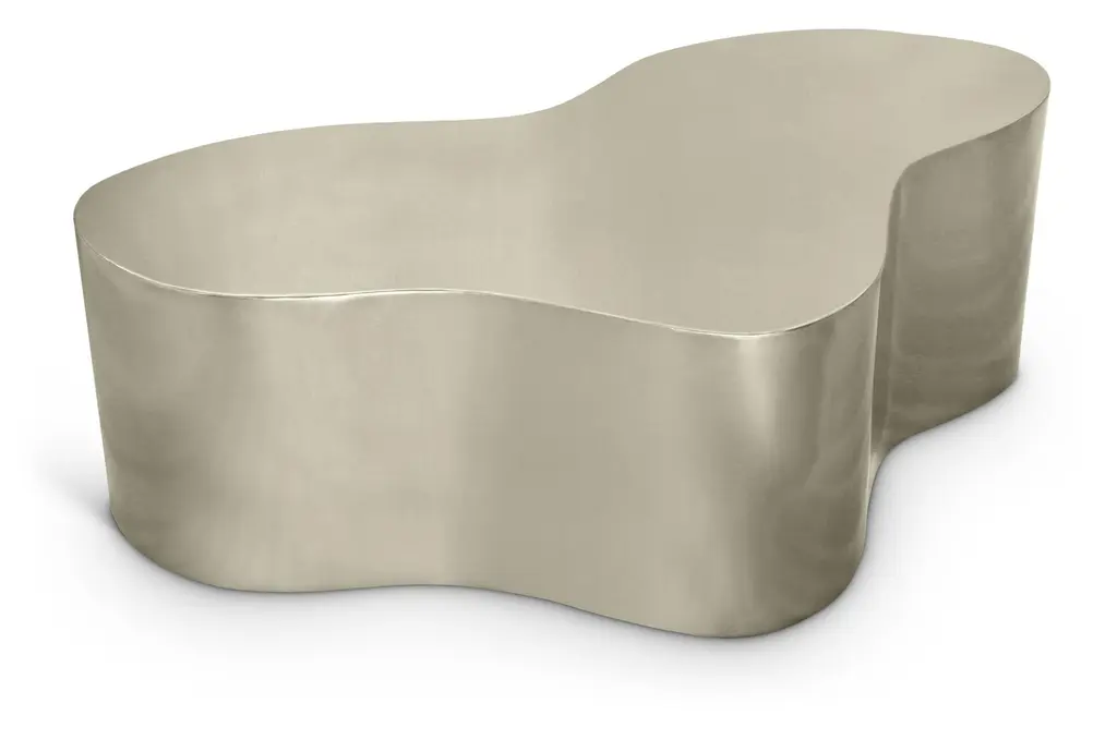 A witty little drink table that promises to stimulate quotable conversations. Use it alone to flaunt its interesting shape or use two that hug each other in a yin and yang configuration to form a single, circular side table. Either way, your guests are sure to be captivated by the table's unique ombre finish that fades from a warm silver to elegant gold.