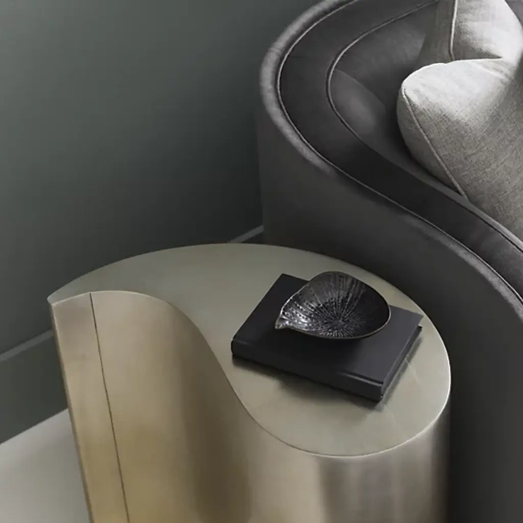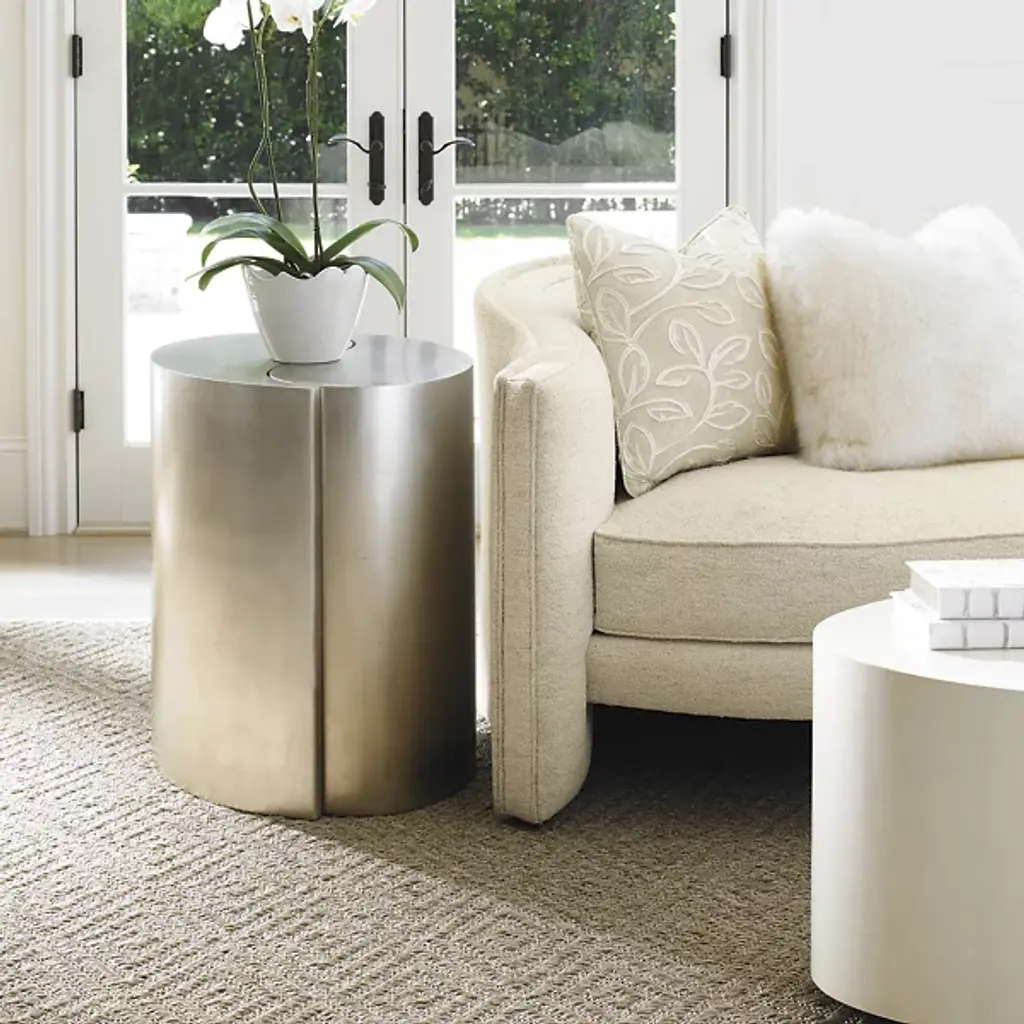 The End Quote Side Table from Caracole is a fusion of artistry and contemporary flair. This side table’s distinctive design features a cylindrical aluminum framework that beautifully tapers, creating wending contours that evoke a sense of fluidity and movement. The result is a quotation mark appearance that brings distinction to your space. What sets the End Quote apart is its versatility. The design allows for the addition of another table to create a round yin and yang composition.