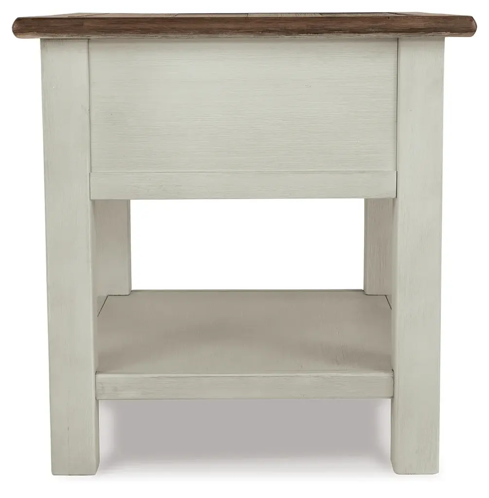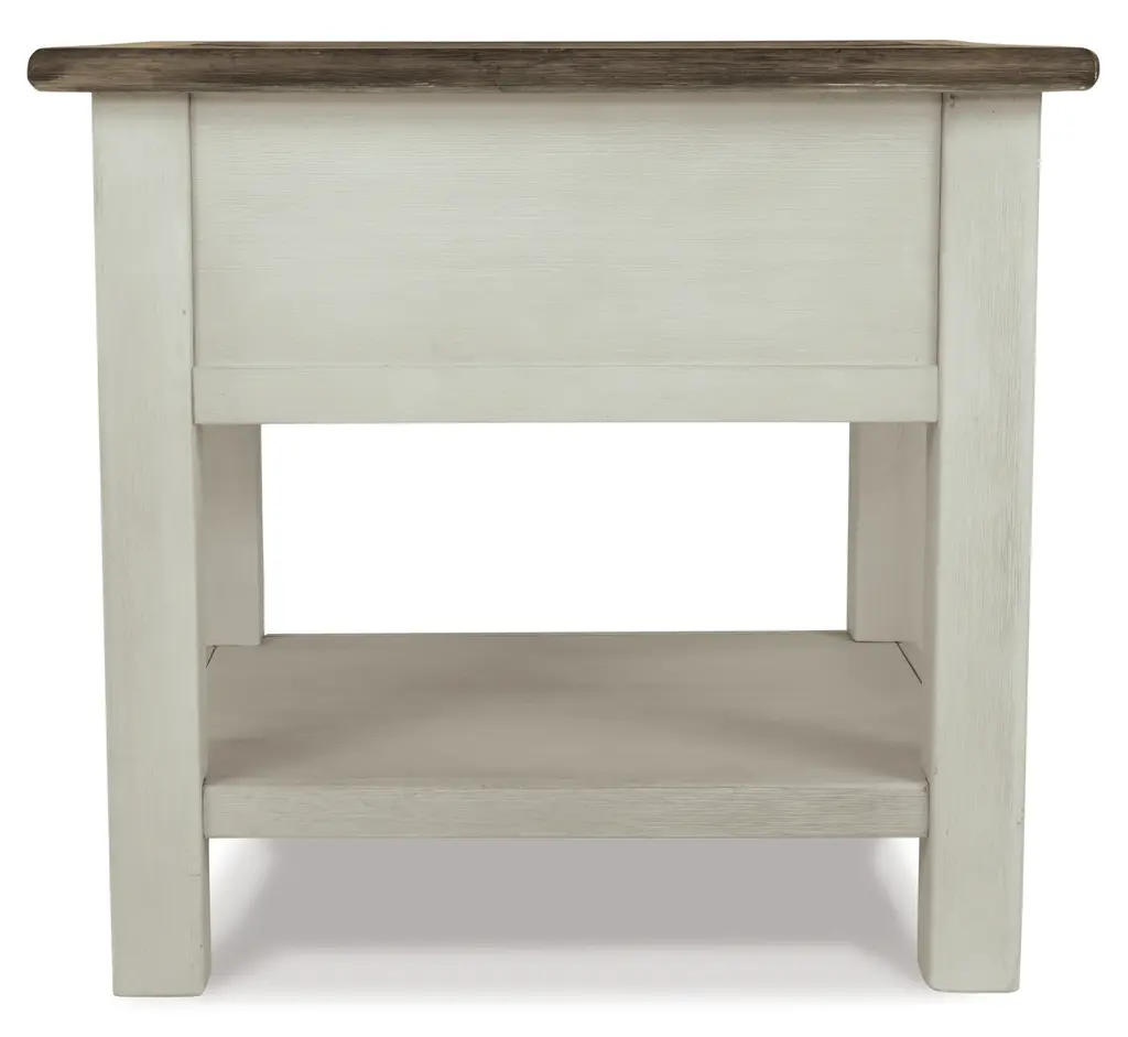 Whether your style is farmhouse fresh, shabby chic or country cottage, you’ll find this end table dressed to impress. Its two-tone, gently distressed finish pairs weathered oak with antique white for that much more quaint character. Charming elements include a plank-and-frame style top, black faceted hardware and a smooth-gliding drawer for remote controls and more.