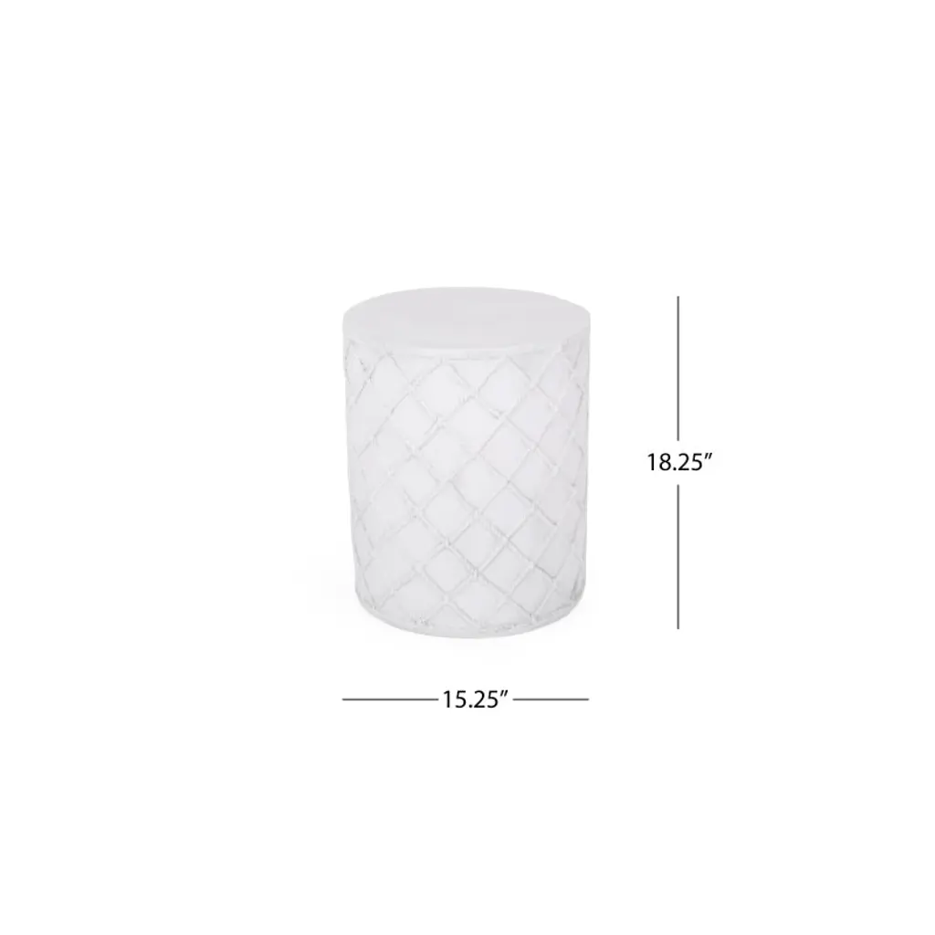 *Elevate your outdoor or indoor space with this stylish and versatile side table. Made from sturdy lightweight concrete, features a sa simple cylindrical structure and a nautical diamond rope pattern that adds a touch of sophistication to any setting. Whether placed next to a bed, sofa, chair, or near to a swimming pool, chaise lounge, this side table provides the perfect spot to set a plate, drink, book, vase, or small plant. *Crafted with a lightweight concrete frame, substantial to withstand tipping but still can be easily moved around, easily fitting into various indoor or outdoor home decoration styles. *Its perfect size allows for placement between two loungers or chairs, making it an ideal addition to your outdoor patio, deck, balcony, or indoor lounge area. Use it as a coffee table, side table, end table, or flower stand, catering to your specific needs and preferences. *With its arrival fully assembled, offers ultimate convenience, no need to spend time or effort on assembly. Easy cleaning with a damp cloth, you don't have to worry about sticky residue or stains.