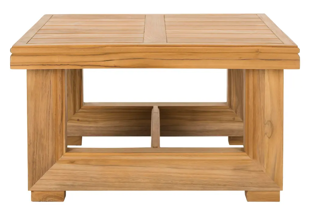 Bring the natural beauty of solid wood to any outdoor living area with this contemporary teak end table. Finely crafted, it's substantial frame, clean lines and cut-out design makes it a investment in gracious living. a ideal spot for evening cocktails.