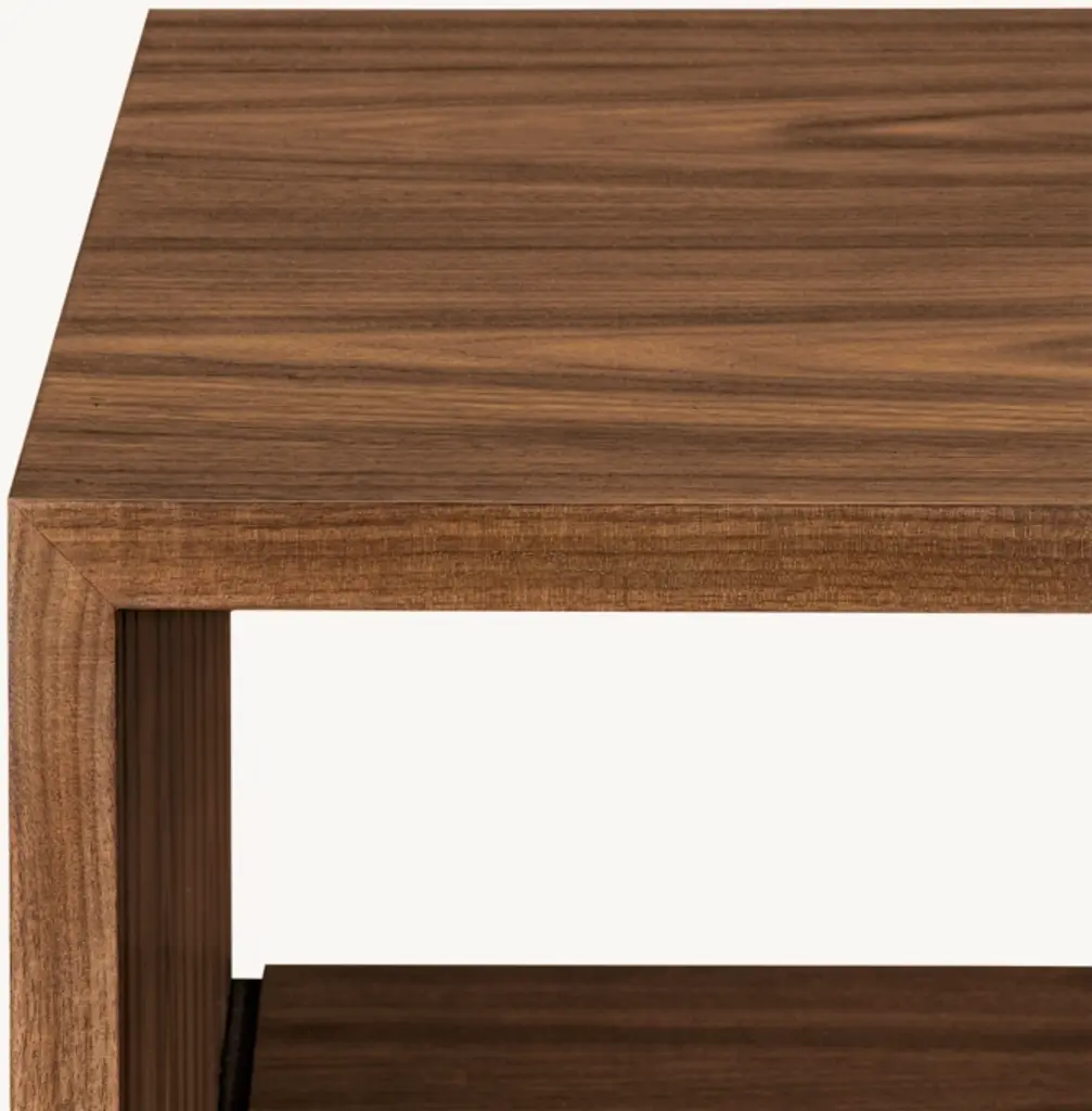 Enzo, designed by Los Angeles- and London-based Alexander Purcell, is handcrafted of American walnut. Planes meet at right angles and enfold each other in a dynamic embrace. A slim reveal between the outer and inner frame elements creates a compelling play of shadow, defining the silhouette. SHOP THE ENTIRE COLLECTION