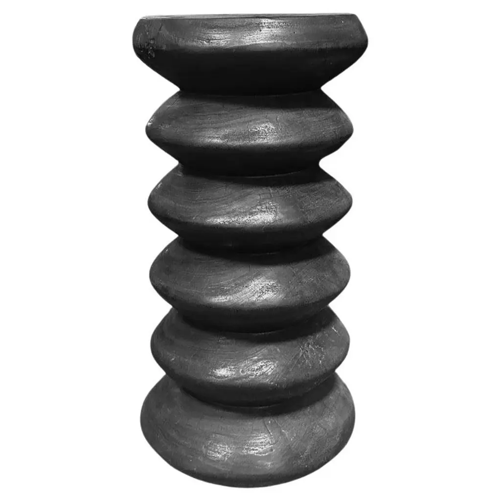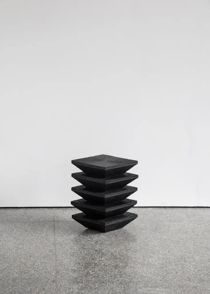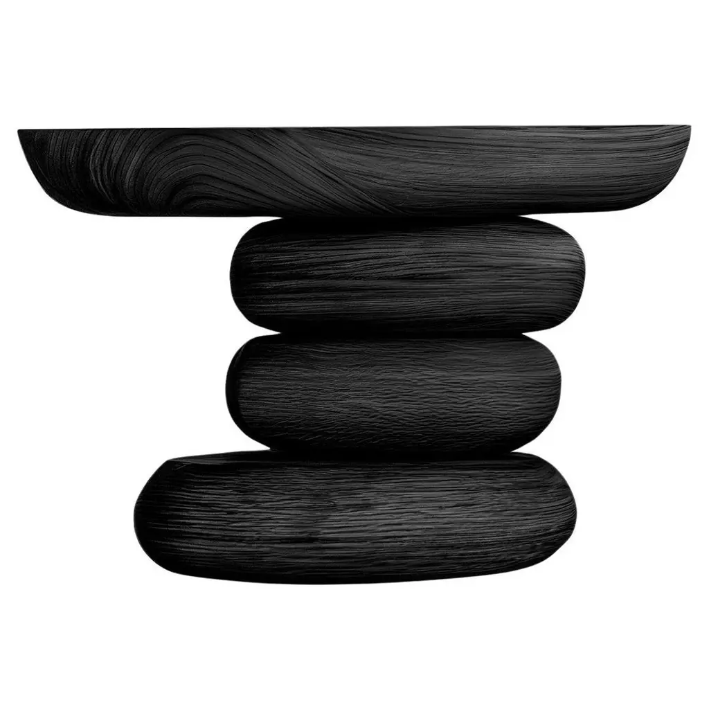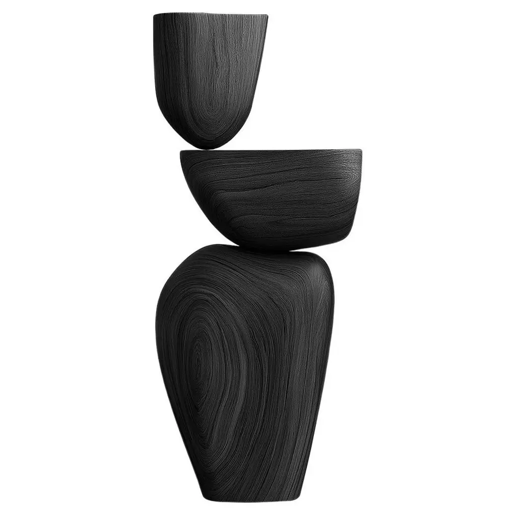 Epang 07 side table by Sing ChanDimensions: W 25 x D 25 x H 52.5 cmMaterials: Manual sculpture, teak, black paint, waxingSing Chan ( Chinese: 陈星宇/Xingyu Chen) , the founder of SINGCHAN DESIGN, was born in 1990, and graduated from the Department of Industrial Design in Guangzhou University in 2013. He served as the Design Director for Bentu Design in 2016.Founded his own design studio in 2020, Sing specializes in discovering new revelations from different civilizations and eras, reconstructing them through design methods, and shaping new objects that link the past and the present.Panyu, Guangzhou, China, where Sing grew up, is a small town with a rich history along the Pearl River. In the early years, thanks to the developed waterway transportation, the port of the town has a very close relationship with Hong Kong, the imported cultures, utensils, and values meet and fuse here.It was not until he had been in the design industry for more than ten years that he realized that his understanding of native culture was shallow. He is confused about this, and experience tells him that the truly valuable objects are not groundless and pieced together, but based on historical inspection and adaptation of the times. Sing hopes that his design can be like a story that is worth telling in a lyric way, affecting the present across time.