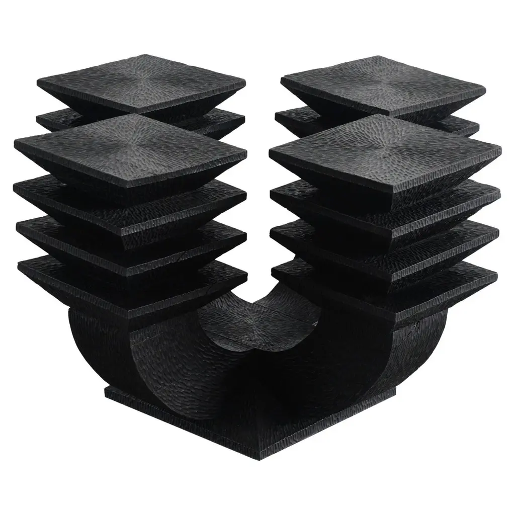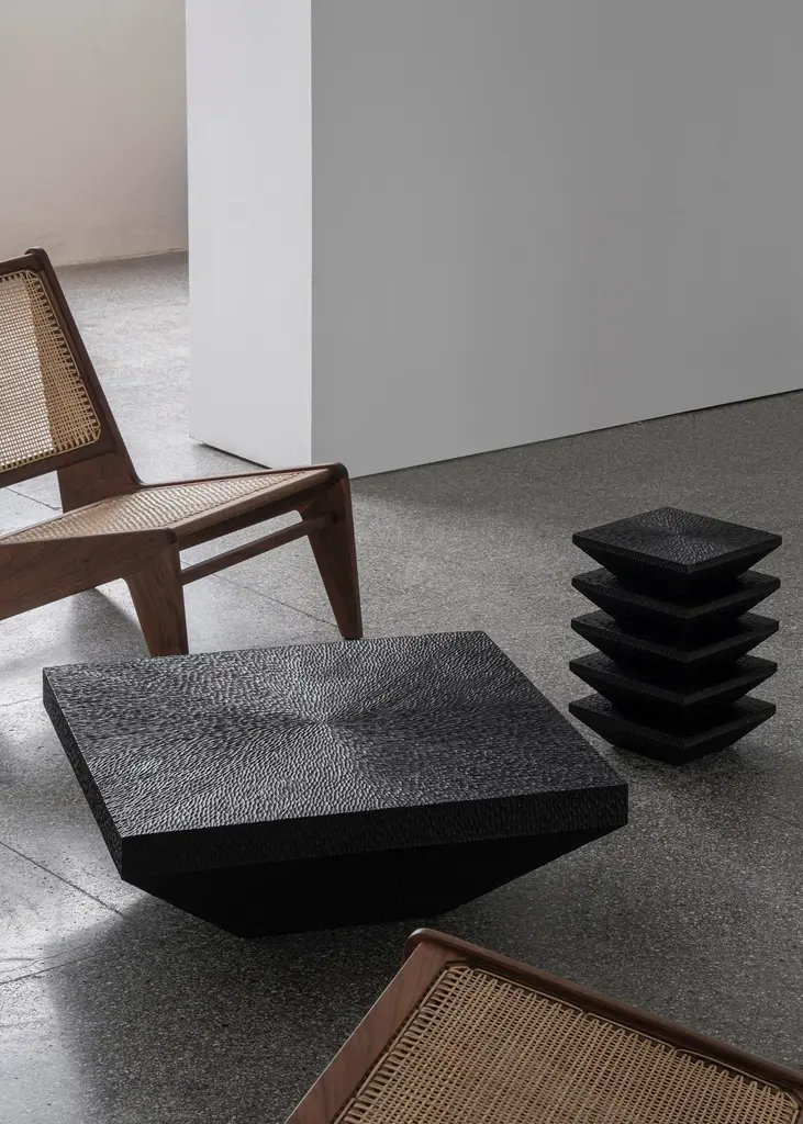 Epang 09 side table by Sing ChanDimensions: W 40 x D 40 x H 37.5 cmMaterials: Manual sculpture, teak, black paint, waxing.Sing Chan ( Chinese: 陈星宇/Xingyu Chen) , the founder of SINGCHAN DESIGN, was born in 1990, and graduated from the Department of Industrial Design in Guangzhou University in 2013. He served as the Design Director for Bentu Design in 2016.Founded his own design studio in 2020, Sing specializes in discovering new revelations from different civilizations and eras, reconstructing them through design methods, and shaping new objects that link the past and the present.Panyu, Guangzhou, China, where Sing grew up, is a small town with a rich history along the Pearl River. In the early years, thanks to the developed waterway transportation, the port of the town has a very close relationship with Hong Kong, the imported cultures, utensils, and values meet and fuse here.It was not until he had been in the design industry for more than ten years that he realized that his understanding of native culture was shallow. He is confused about this, and experience tells him that the truly valuable objects are not groundless and pieced together, but based on historical inspection and adaptation of the times. Sing hopes that his design can be like a story that is worth telling in a lyric way, affecting the present across time.