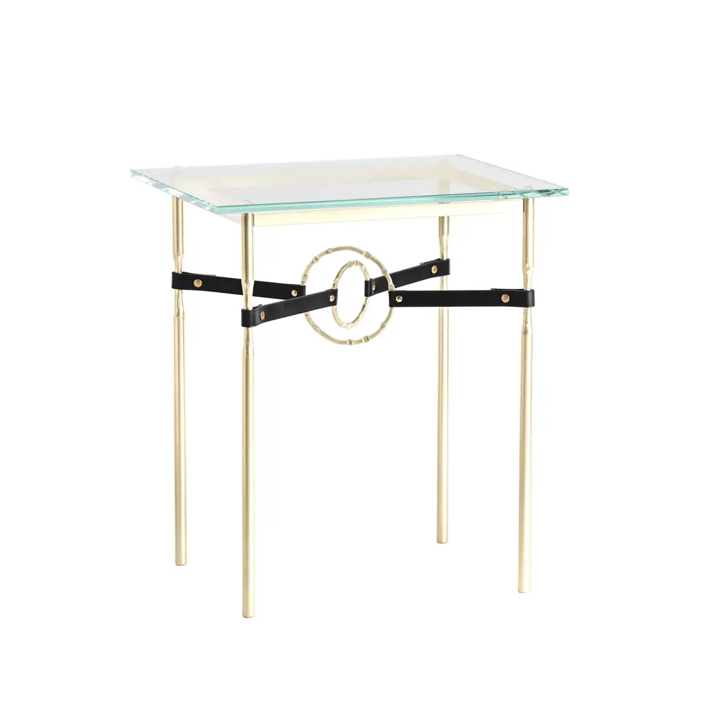 The Equus Side Table is the perfect accent to a sophisticated setting. A side table with a touch of glam', the Equus is perfect for living and lounge areas, studies and other spaces. With its artisanal leather strapping connected by hand-forged and hammered steel rings, and a tempered glass top, the Equus adds both function and refinement to any setting. Available in all standard finishes.