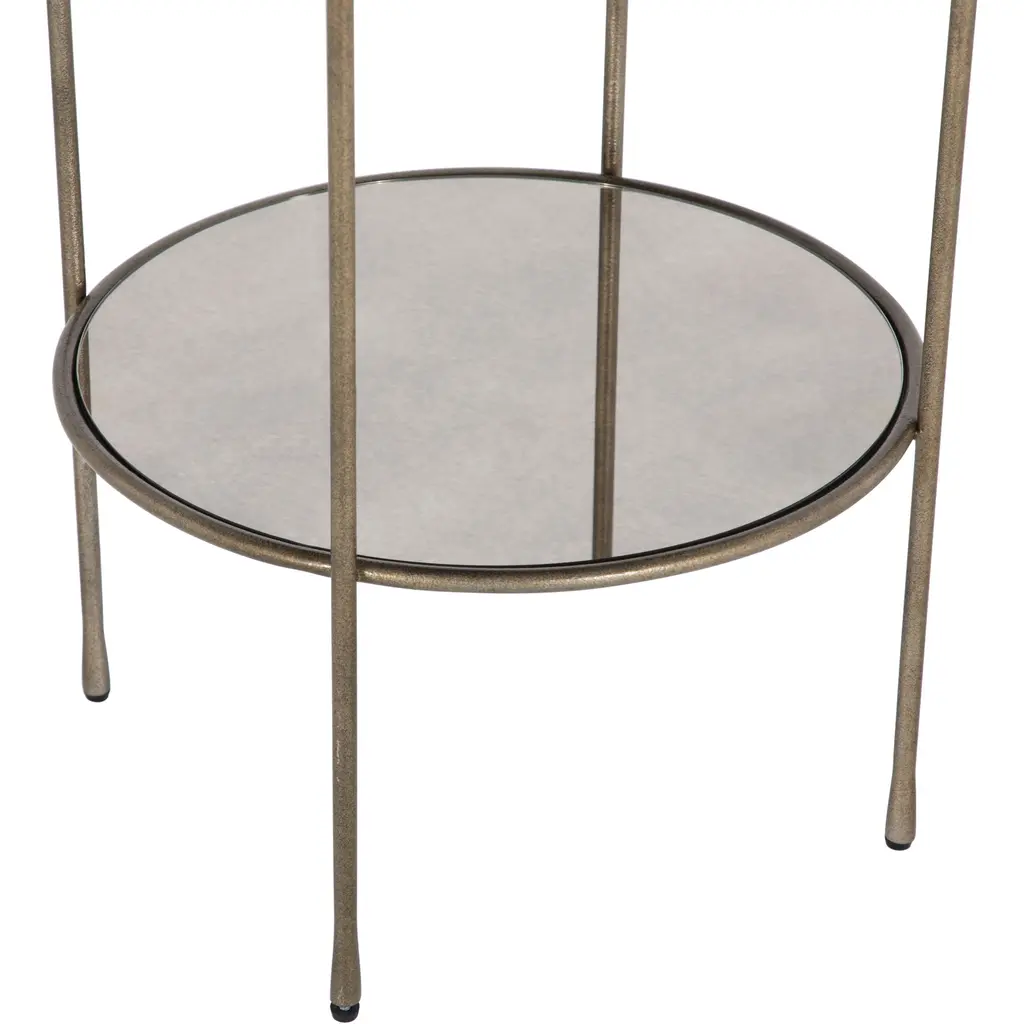 The Ernest Side Table is a beautifully crafted piece, featuring a forged metal frame finished in elegant champagne hue. Its two antique mirror shelves provide a touch of vintage charm, adding both functionality and style to the design. With its versatile size and timeless appeal, the Ernest Side Table seamlessly complements a variety of spaces and decor styles, from classic to contemporary. Whether placed in a living room, bedroom, or hallway, this side table offers a perfect balance of elegance and practicality.