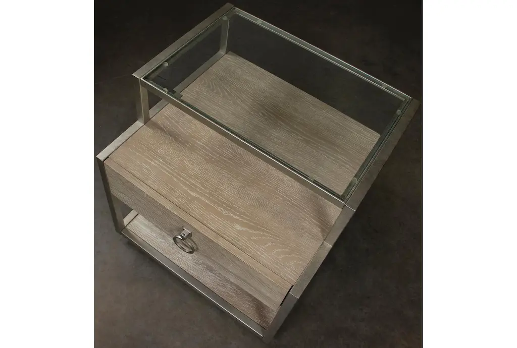 The Esmeralda End Table is a traditional style piece of furniture made from natural wood and glass, perfect for the living room. Assembly is required and it is made from Asian hardwood oak. This design also serves as the perfect bedside table.