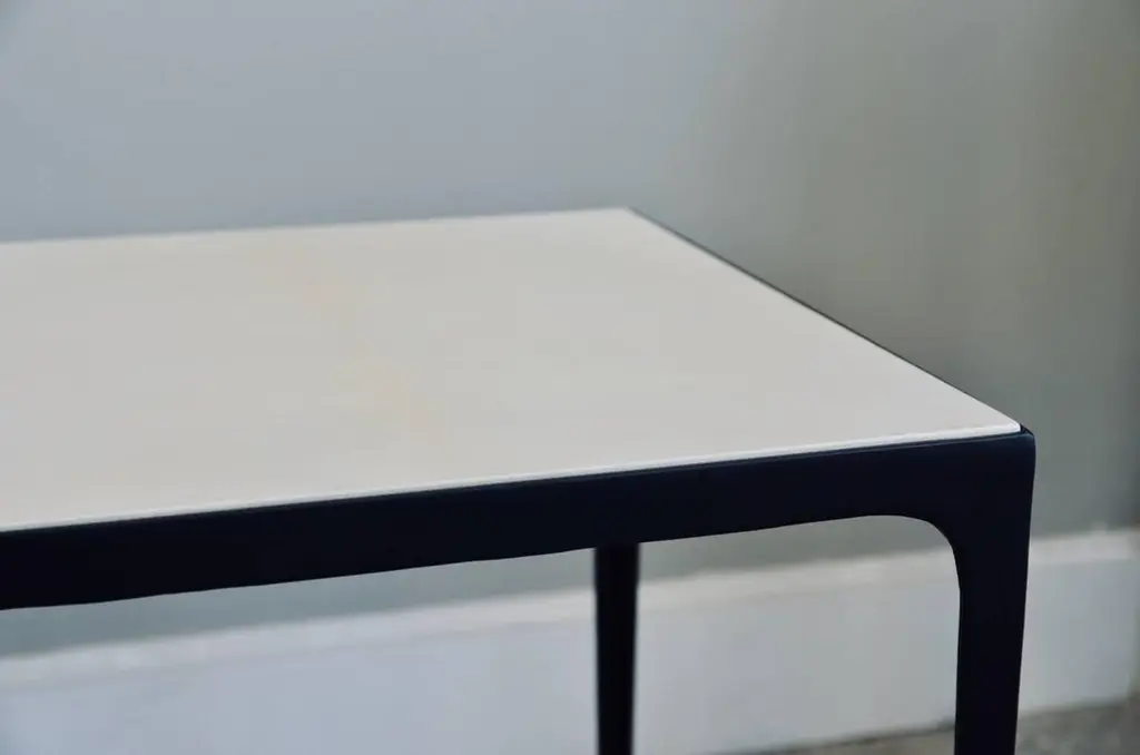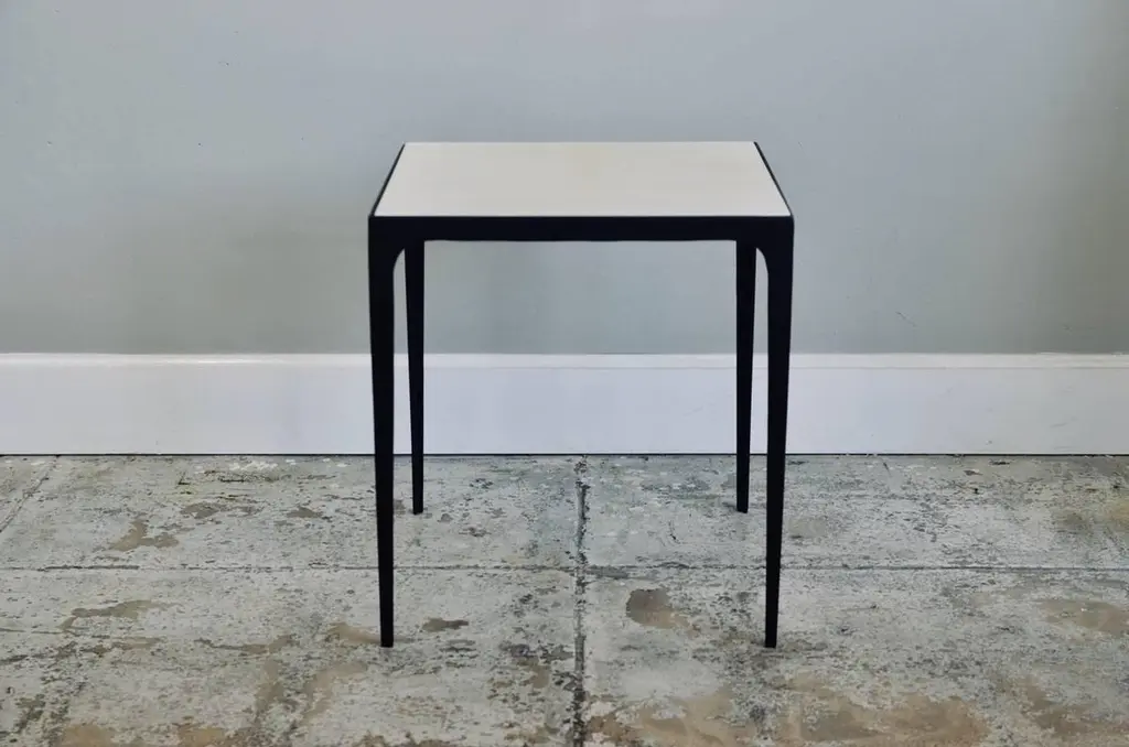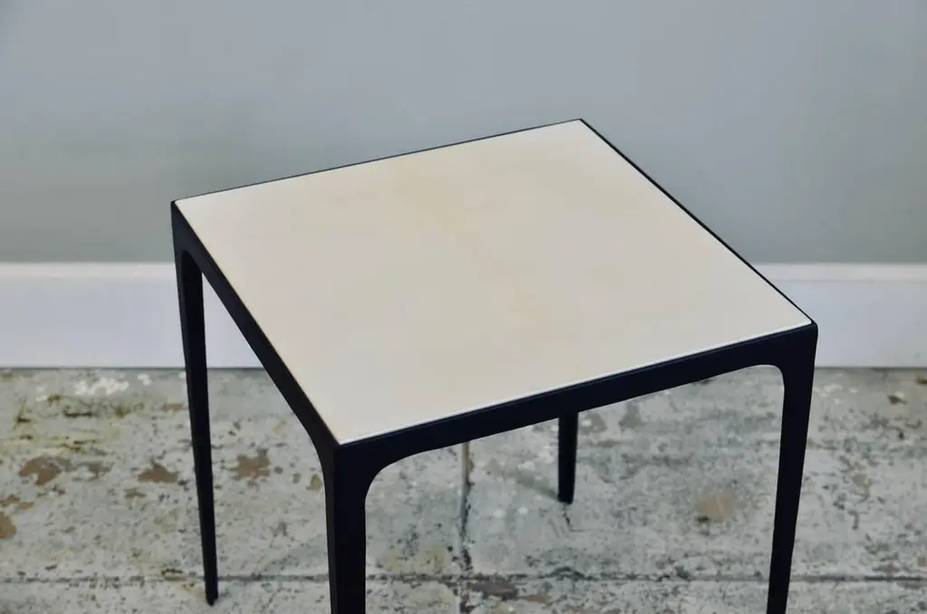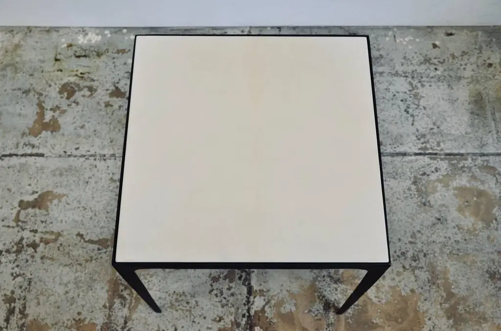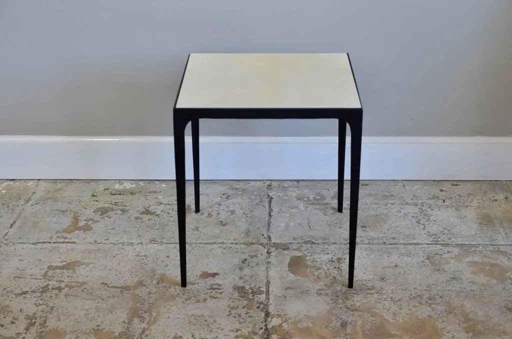'Esquisse' parchment and wrought iron side table by DESIGN FRÈRES.Hard to find real parchment top. Chic and understated.