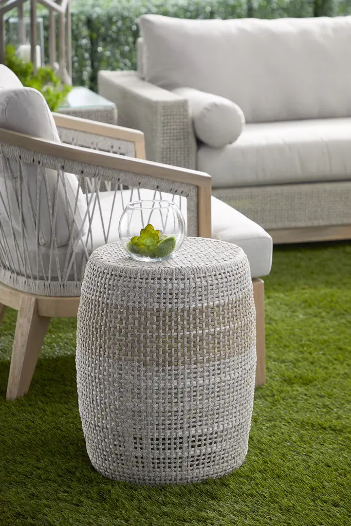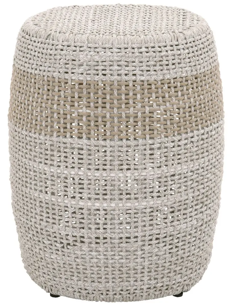 This woven side table will add a touch of coastal style to your kitchen or dining space. This sturdy but durable accent table can be used indoors or outdoors, making it a wonderfully versatile piece. FEATURES & BENEFITS Taupe & White Flat Rope with Taupe Stripe or Platinum Rope Suitable for Indoor and Outdoor Use Intricate Rope Weave Design Aluminum Frame MORE DETAILS Materials: Aluminum, Polypropylene Rope Weight Limit: 200 lbs Dimensions: W:16.5" D:16.5" H:20" Free shipping in the U.S.
