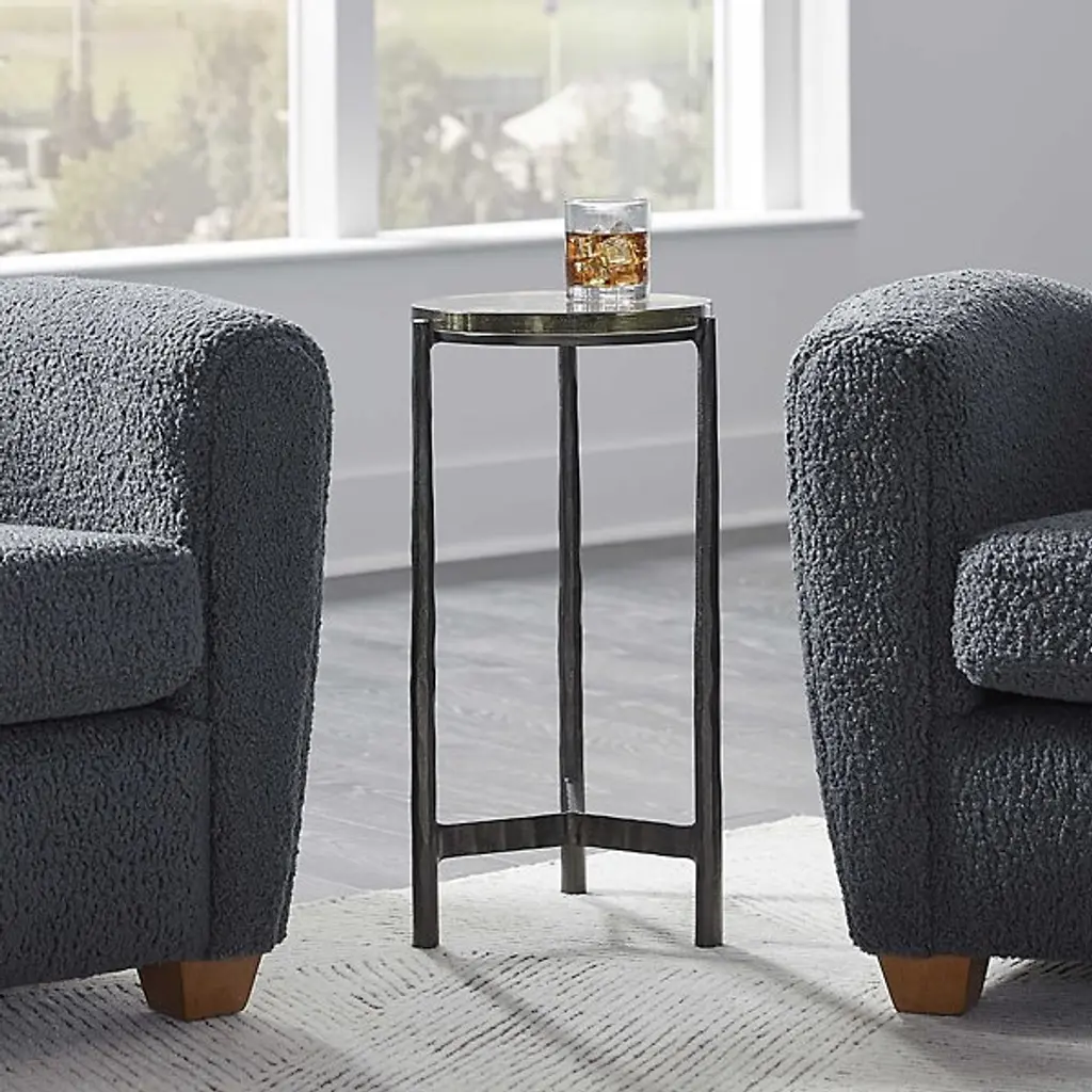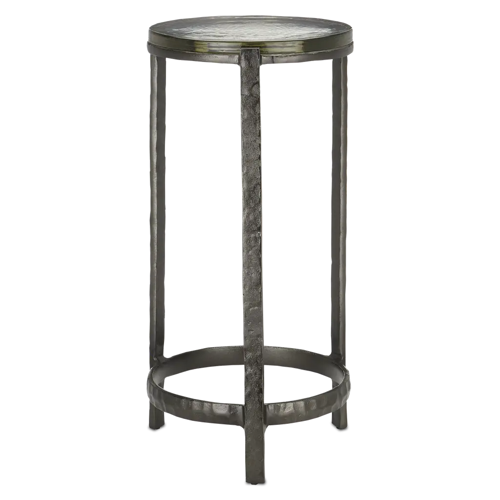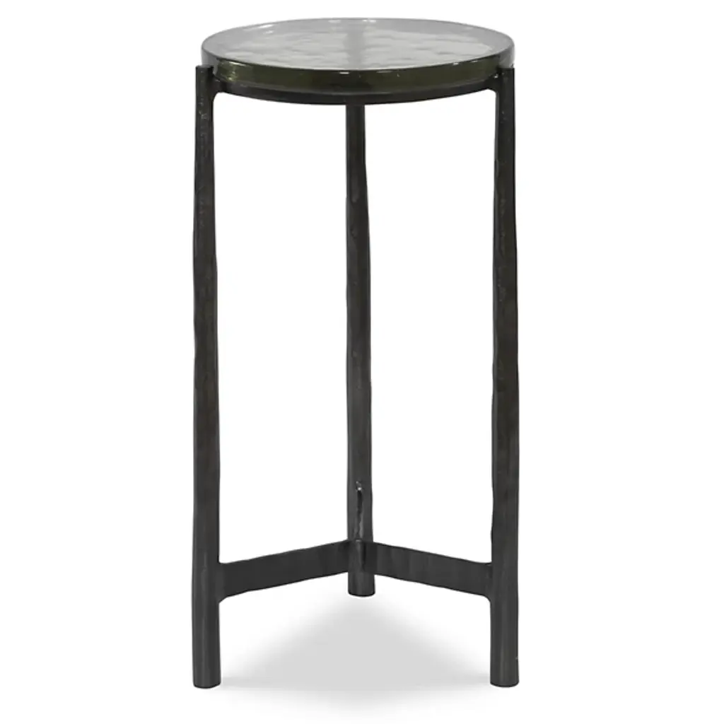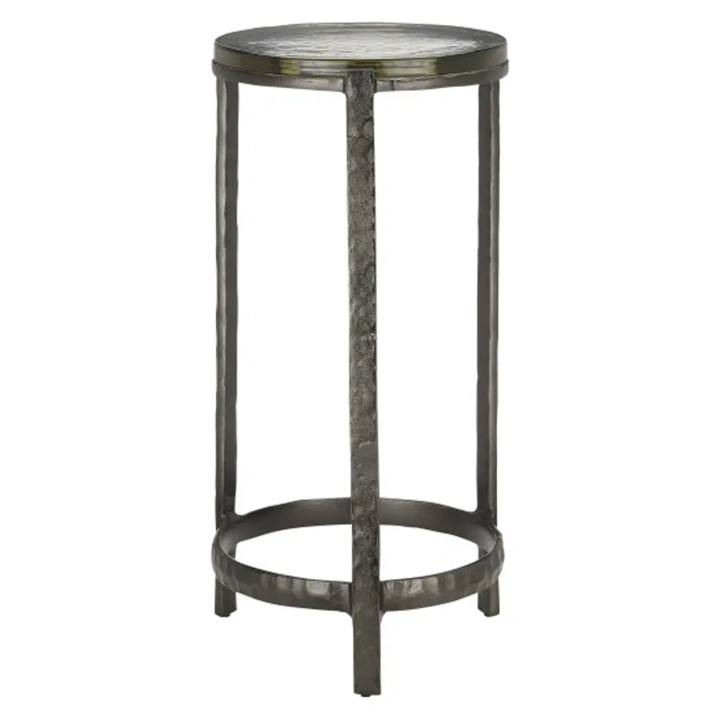 The Eternity Side Table from Uttermost is a timeless and versatile piece that effortlessly harmonizes with various décor styles. This universal side table is a masterful blend of Art Deco elegance and artisanal modern design influences, making it a sophisticated addition to your space. The chiseled cast aluminum is a sculptural focal point, adding artistic flair to your interior. The base is designed to provide stability and visual interest. Topping the table is a textured art glass surface.