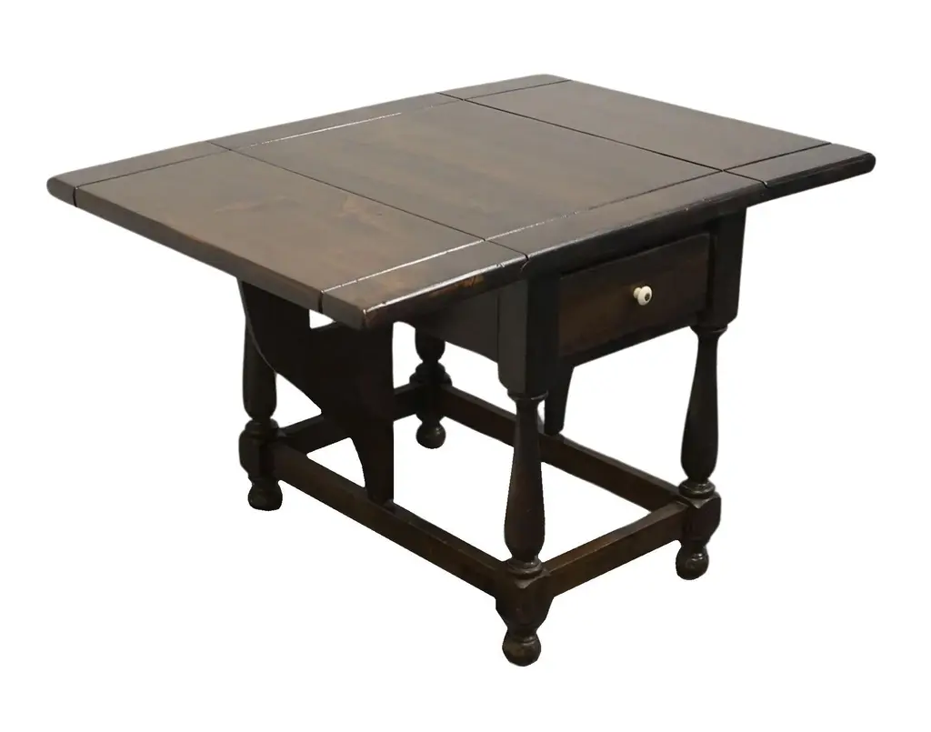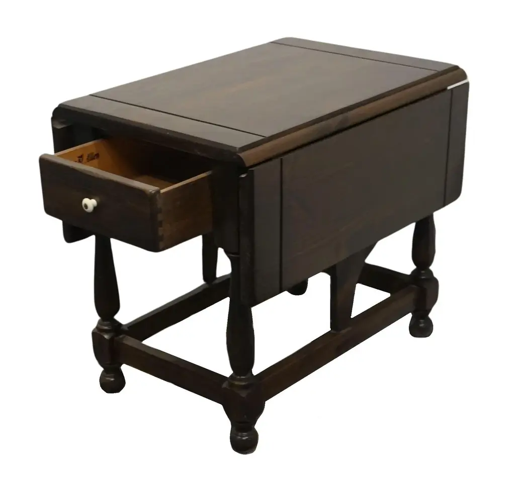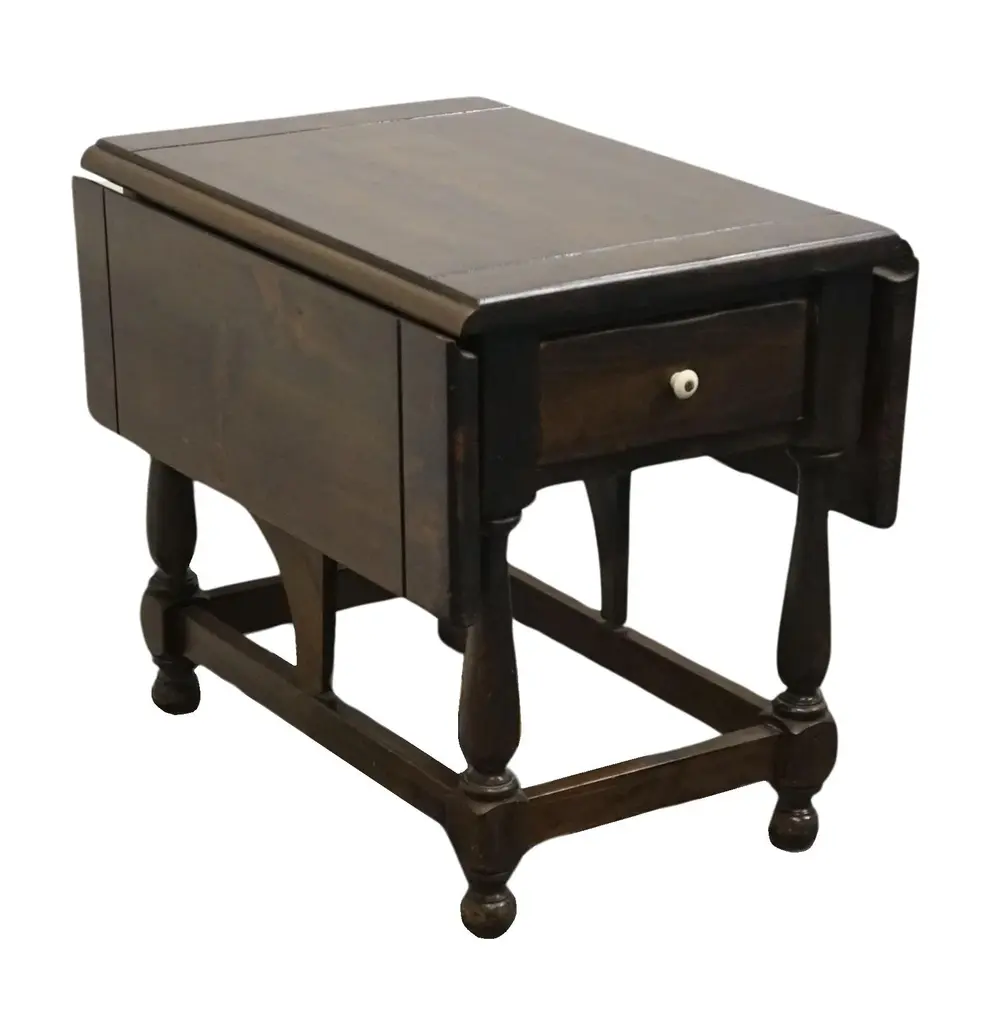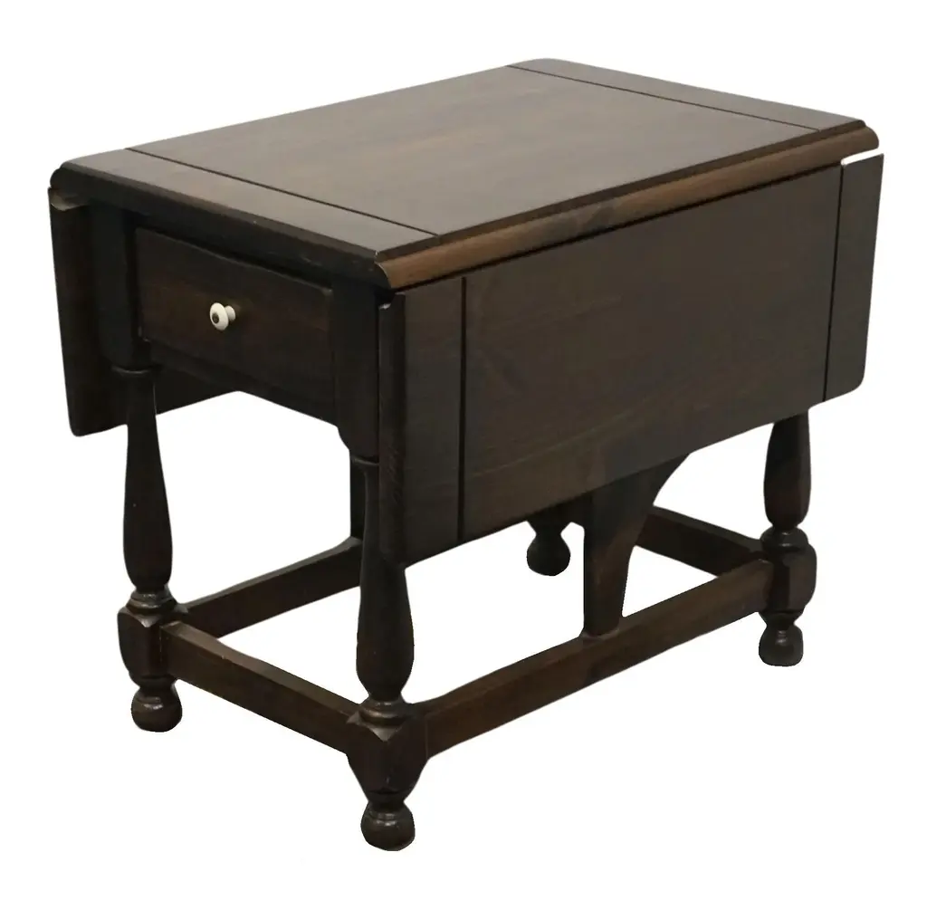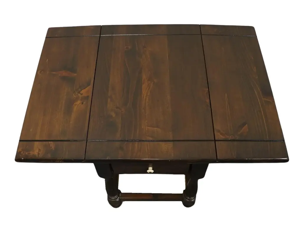 Ethan Allen Antiqued Pine Old Tavern Rustic Early American 37" Butterfly Drop Leaf Accent End Table 12-8034
