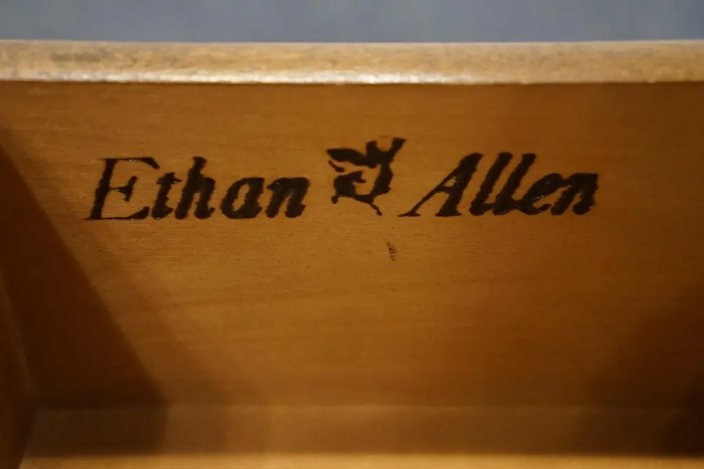 ETHAN ALLEN Antiqued Pine Old Tavern Rustic Early American 37" Butterfly Drop Leaf Accent End Table 12-8034 24.25" High Leaves Down: 20" Wide Leaves Up: 37" Wide 27" Deep We specialize in high end used furniture that we consider to be at least an 8 on a scale of 1 to 10 regarding condition, unless otherwise noted.