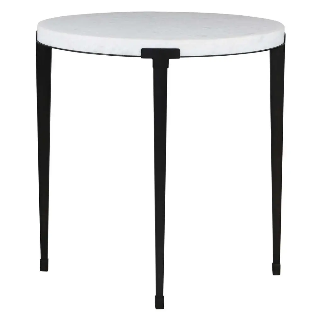 The Ethera End Table presents a study in minimalistic elegance with its sturdy stone top and four sleek metal legs, offering a refined and practical addition to any living space with its clean lines and enduring sophistication.