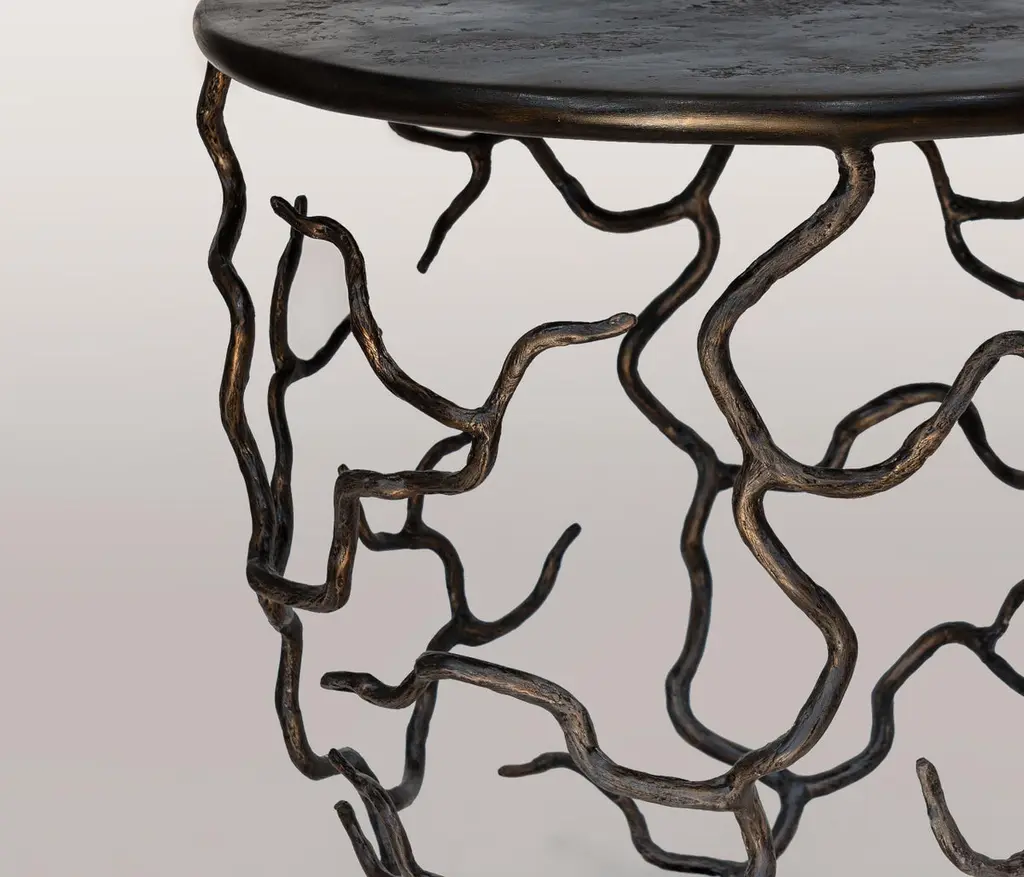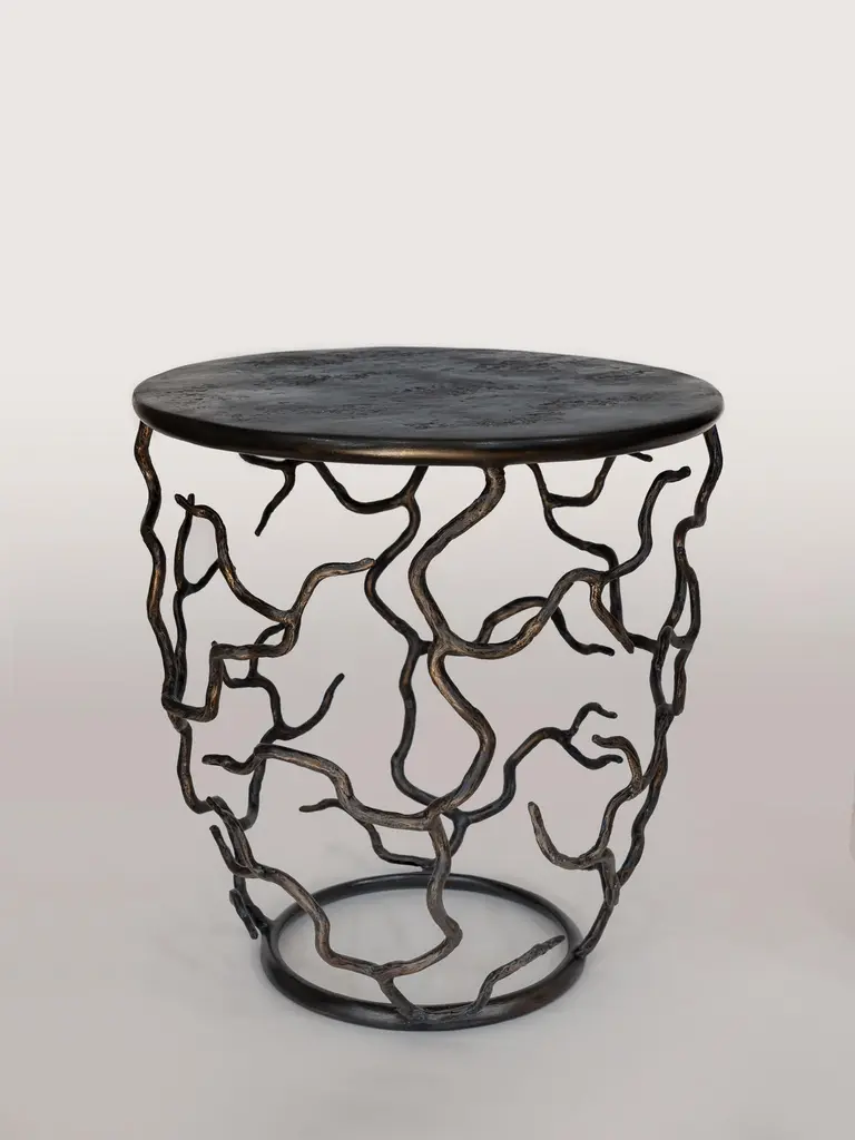 A rare opportunity to acquire designs from past season, one-of-a-kind pieces or unique prototypes. With discount of up to 70%.The ‘Etna’ side table by Benediko Design is a sculptural, handcrafted accent piece made from a solid metal structure, hand-shaped with plaster, and finished in Bronze Plaster – a warm, earthy tone with the character of aged bronze and the texture of tree bark. Inspired by branching organic silhouettes, the Etna table functions both as a minimalist sculpture and a practical furniture object. It brings a strong artisanal presence to any space – from modernist homes to curated interiors with organic sensibility.The richly textured surface is achieved by applying and sculpting layers of plaster over a custom-formed metal base, allowing for deep expression and structural strength.Ideal for beside a sofa or lounge chair, as a sculptural nightstand, in gallery-style interiors or hospitality settings.Details:Material: Metal structure, hand-sculpted with plaster, Bronze Plaster finishFinishes: Bronze Plaster, 23K GoldCustomization available: size, shape, finish. For custom orders available on an 8-9 week lead time. Origin: Handmade in Europe, Germany