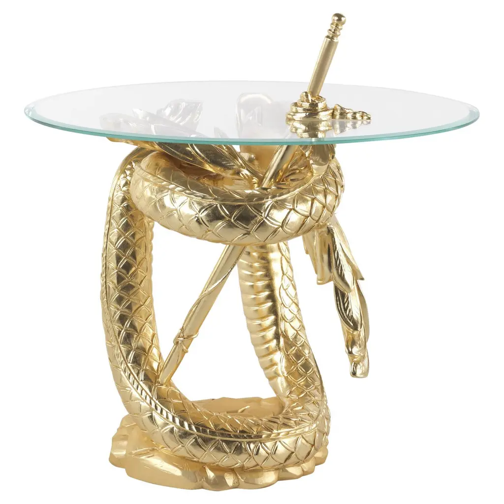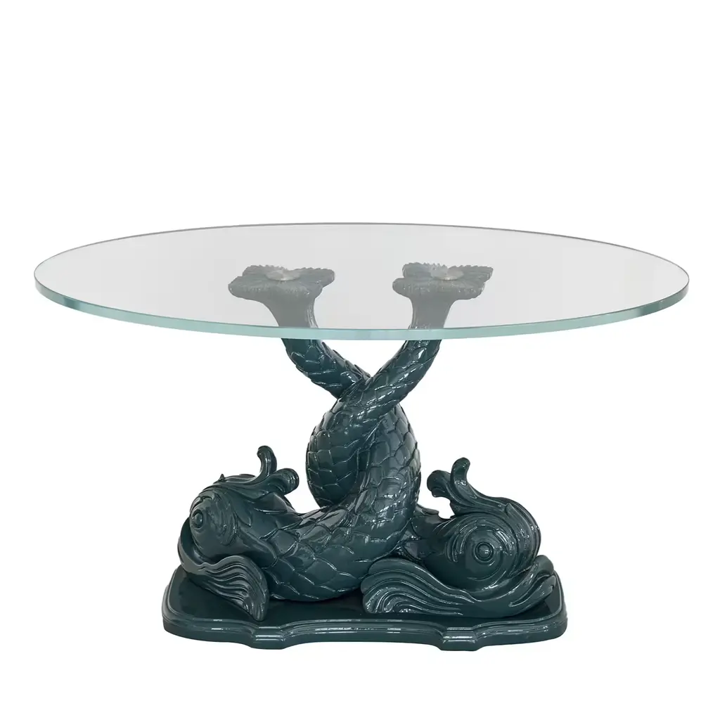 The Etoile side table is a stunning embodiment of Baroque elegance, crafted with meticulous attention to detail. This exquisite piece is constructed from fine wood, showcasing a round table top that exudes timeless charm. What truly sets it apart is the masterfully hand-carved base, a captivating portrayal of aquatic life with intricately depicted fish.The table's allure is further accentuated by its opulent finish—a luxurious layer of gold leaf adorned with a subtle patina, creating a sense of vintage grandeur. The Etoile side table seamlessly blends Baroque style with artisanal craftsmanship, making it not just a functional piece of furniture but a captivating work of art that adds a touch of regal sophistication to any space.