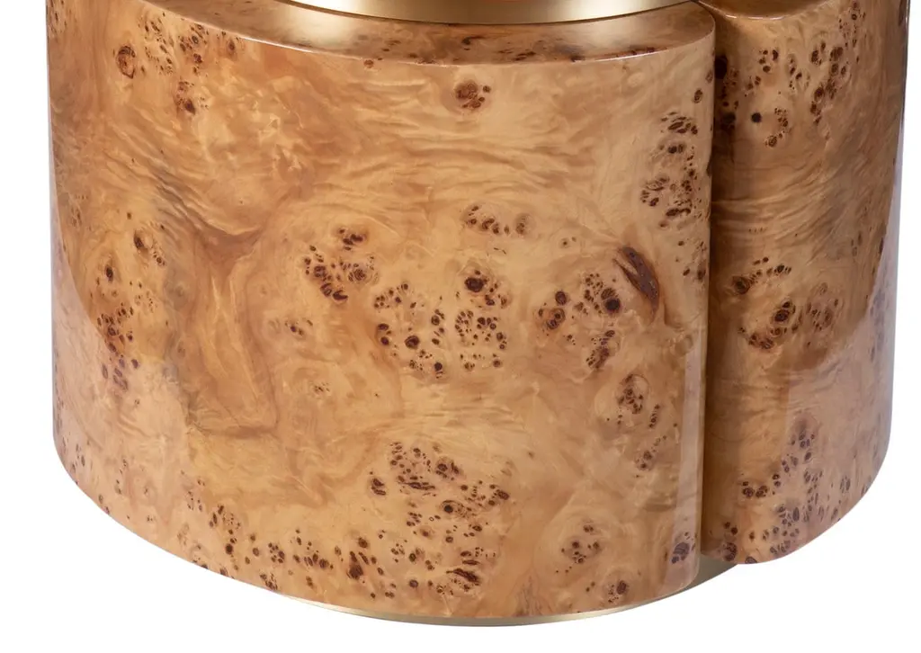 Euphoria Small Side Table by Memoir EssenceDimensions: D 46 x W 46 x H 50 cm.Materials: Poplar Root with high gloss lacquer and brushed brass.Available in two different sizes and in a set of 2. Please contact us. In the mood for springtime, when color and nature are flourishing, Memoir presents the new side table set Euphoria. Fresh, dynamic, colorful but still with the elegant and classy look that Memoir brings to its collection. Blending poplar root, with brushed brass details and a choice of lacquered colors, finished in high gloss varnish, these pieces can be part of your projects together or separately. This side table set is a must-have to any exquisite project.Memoir Essence Interiors has been writing its memoirs day by day, inspired in every detail lived through a feminine world, this world brings the most delicate imaginary. Jewelry, fashion, architecture, music, art and materials are Memoir’s inspirations to materialize a collection of design pieces of furniture, upholstery, lighting and accessories.The use of noble materials like marble, brass, veneers, gold and silver leaf, Swarovski crystals as other decorative and fine materials, combined with handwork techniques as casted brass, hand-whickered fabric ribbons, gold leaf appliance, marble cutted and puzzled pieces, provide the needed essence to tell memoirs through the designed pieces and the interiors they fulfill.This collection mostly handmade and focused on details and material nobility is made in Portugal, bringing handwork techniques that are part of Portuguese history, applied in a current and differentiated way, delivering timeless pieces to your special projects. Acquire Memoir is the opportunity to travel through the feminine essence over design and experience a unique “memoir” of timelessness and exclusivity.Writing is first chapter in 2016, after a journey of inspirational research, forecasting and design, Memoir made its first appearance at Maison et Objet, Paris.Since then Memoir is “writing” memories adding new materials, designs, techniques and appearances around the world, as in Paris, London or UAE.Memoir will continue this journey, always motivated by the inspiration possibilities in the many delicate details found in feminine world.Tell your memoires with this collection and be a memorialist yourself…