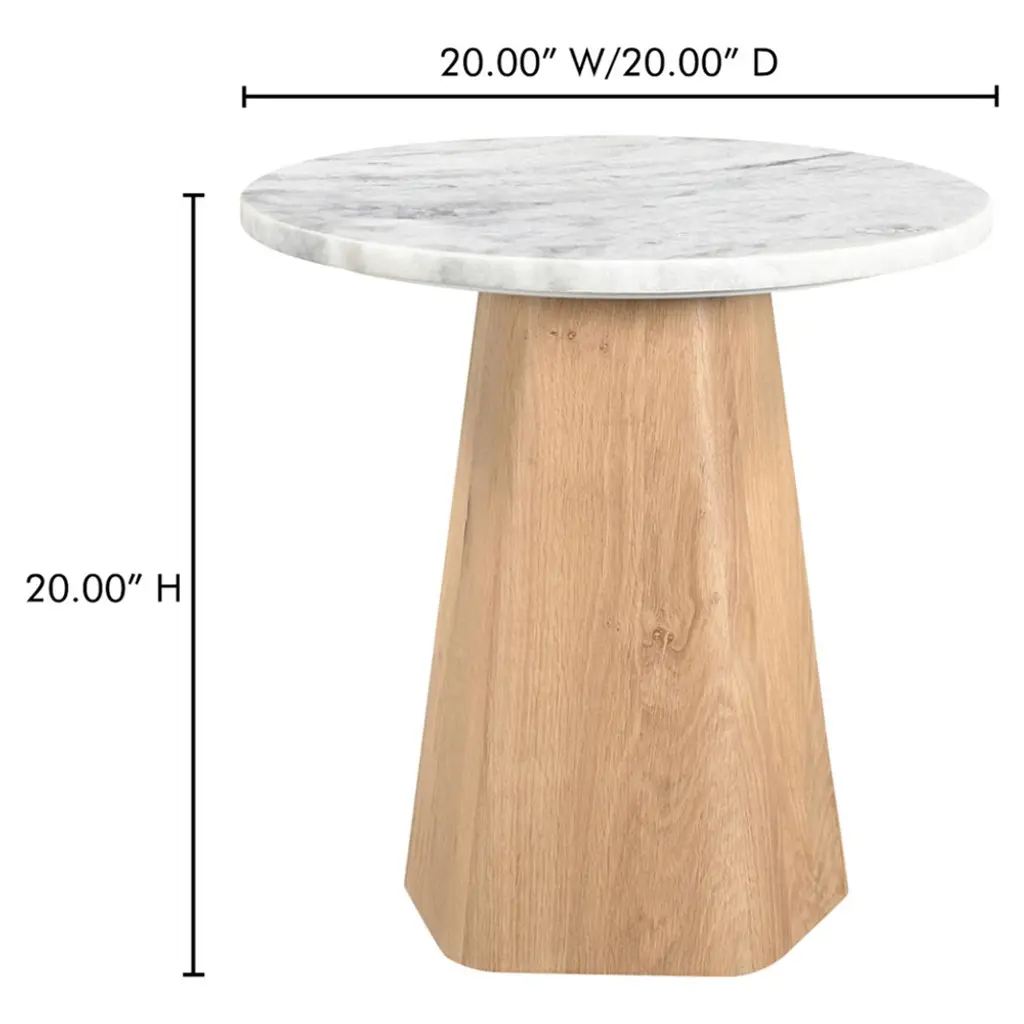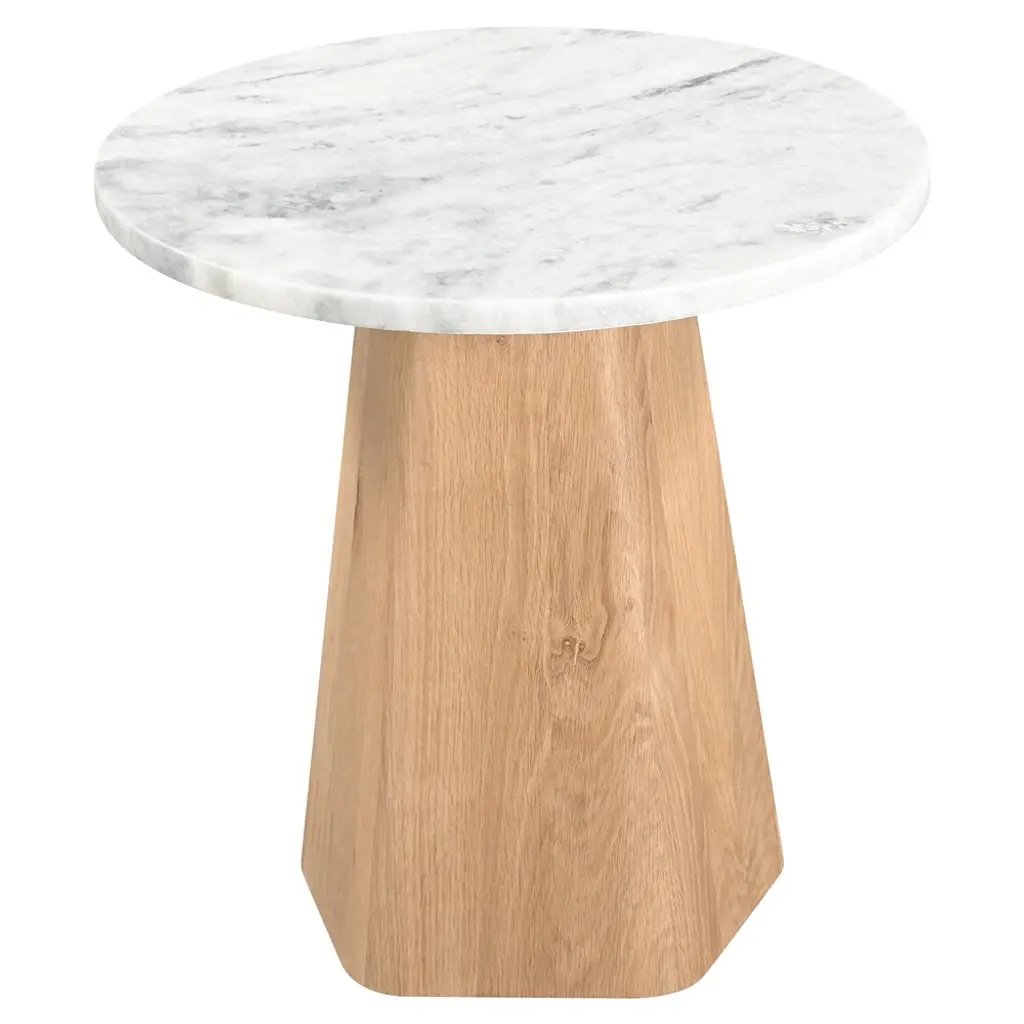 Eva Modern Classic Grey Marble Brown Oak Round Accent Table