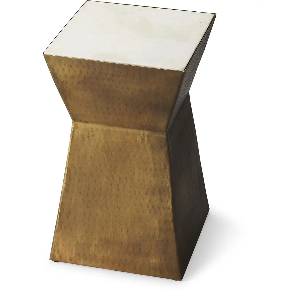 The modern shape and rich texture of this iron side table add depth to your sitting area, while a white marble top creates a beautiful space for entertaining.