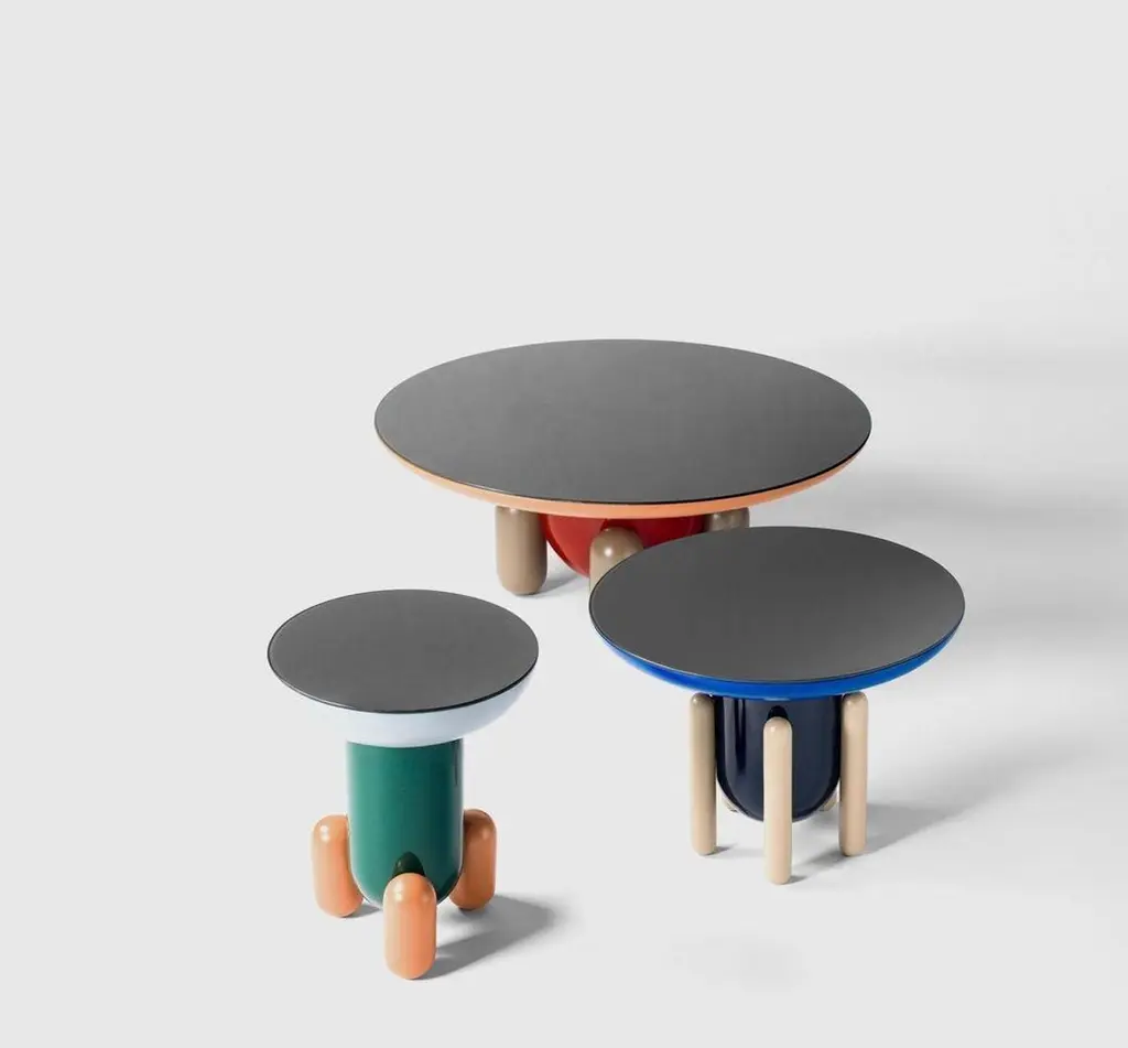 Explorer 2 side table by Jaime HayonDimensions: Diameter 60 x Height 46 cm Materials: Lacquered fiberglass body. Solid turned wooden legs and lacquered. Painted glass tabletop.Available in sizes Explorer 1 (Diameter 40 cm) and Explorer 3 (Diameter 100 cm). And also available in monochromatic colors.A series of side tables, Explorer 1, 2, and 3 inspired by the playful and what remind one of the jelly-beans, rounded sweets that those children eat in the US. This childlike inspiration has at the same time a very elegant beauty which generally is characterized in my designs. It’s about new shapes, different objects within the market that want to convert into emblematic pieces because these tables are not only functional but sculpturally strong. Painting some of the parts with a gloss finish and others in matte at the same time, reflective top surfaces and the different combinations of colors give even more richness to the collection which pretends to be blatantly decorative. They are pieces that communicate. There are also mono-color versions carrying the same sculptural character, exclusively offered through BD.The maximum weight on the table is up to 10 kgs. Indoor use only. In 1972, a group of young architects and designers from Barcelona created BD with the aim of producing and marketing furniture and other objects for our projects, with complete creative freedom and with a criterion that has turned out to be quite different from the norm at companies in the sector, regarding both the shape and function.