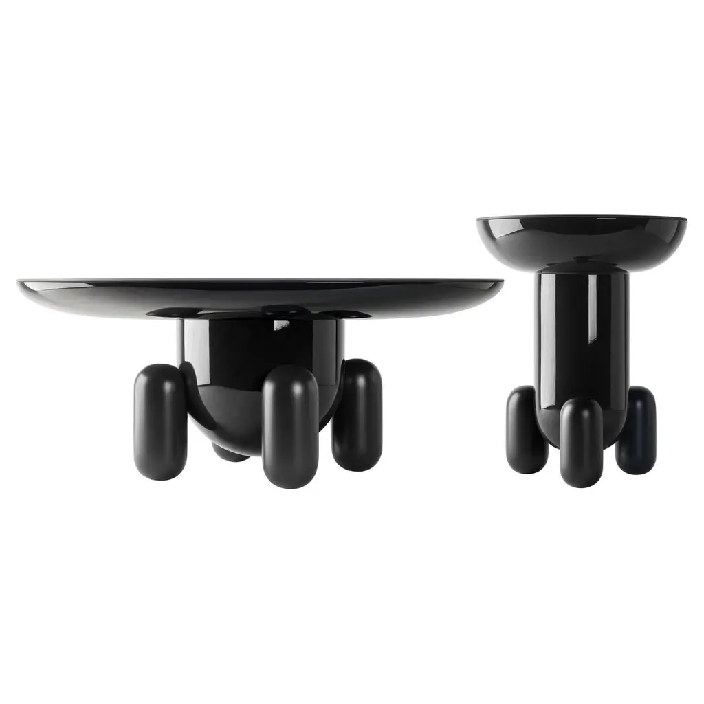 Explorer 3 Monocolor side table by Jaime HayonDimensions: Diameter 100 x Height 42 cm Materials: Lacquered fiberglass body. Solid turned wooden legs and lacquered. Painted glass tabletop.Available in sizes Explorer 1 (Diameter 40 cm) and Explorer 2 (Diameter 60 cm). And also available in multicolors. A series of side tables, Explorer 1, 2, and 3 inspired by the playful and what remind one of the jelly-beans, rounded sweets that those children eat in the US. This childlike inspiration has at the same time a very elegant beauty which generally is characterized in my designs. It’s about new shapes, different objects within the market that want to convert into emblematic pieces because these tables are not only functional but sculpturally strong. Painting some of the parts with a gloss finish and others in matte at the same time, reflective top surfaces and the different combinations of colors give even more richness to the collection which pretends to be blatantly decorative. They are pieces that communicate. There are also mono-color versions carrying the same sculptural character, exclusively offered through BD.The maximum weight on the table is up to 12 kgs. Indoor use only. In 1972, a group of young architects and designers from Barcelona created BD with the aim of producing and marketing furniture and other objects for our projects, with complete creative freedom and with a criterion that has turned out to be quite different from the norm at companies in the sector, regarding both the shape and function.