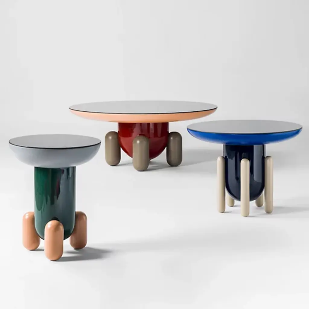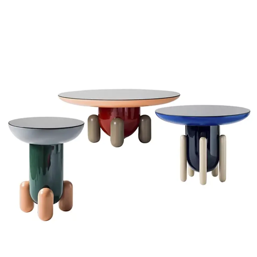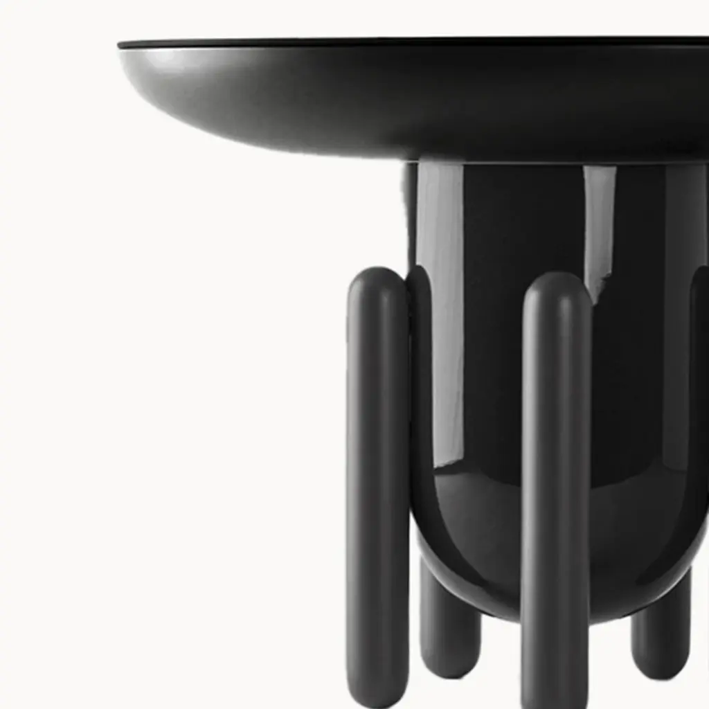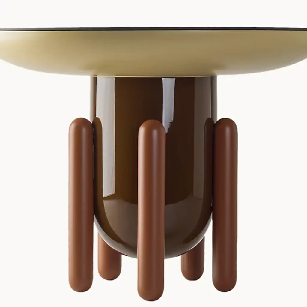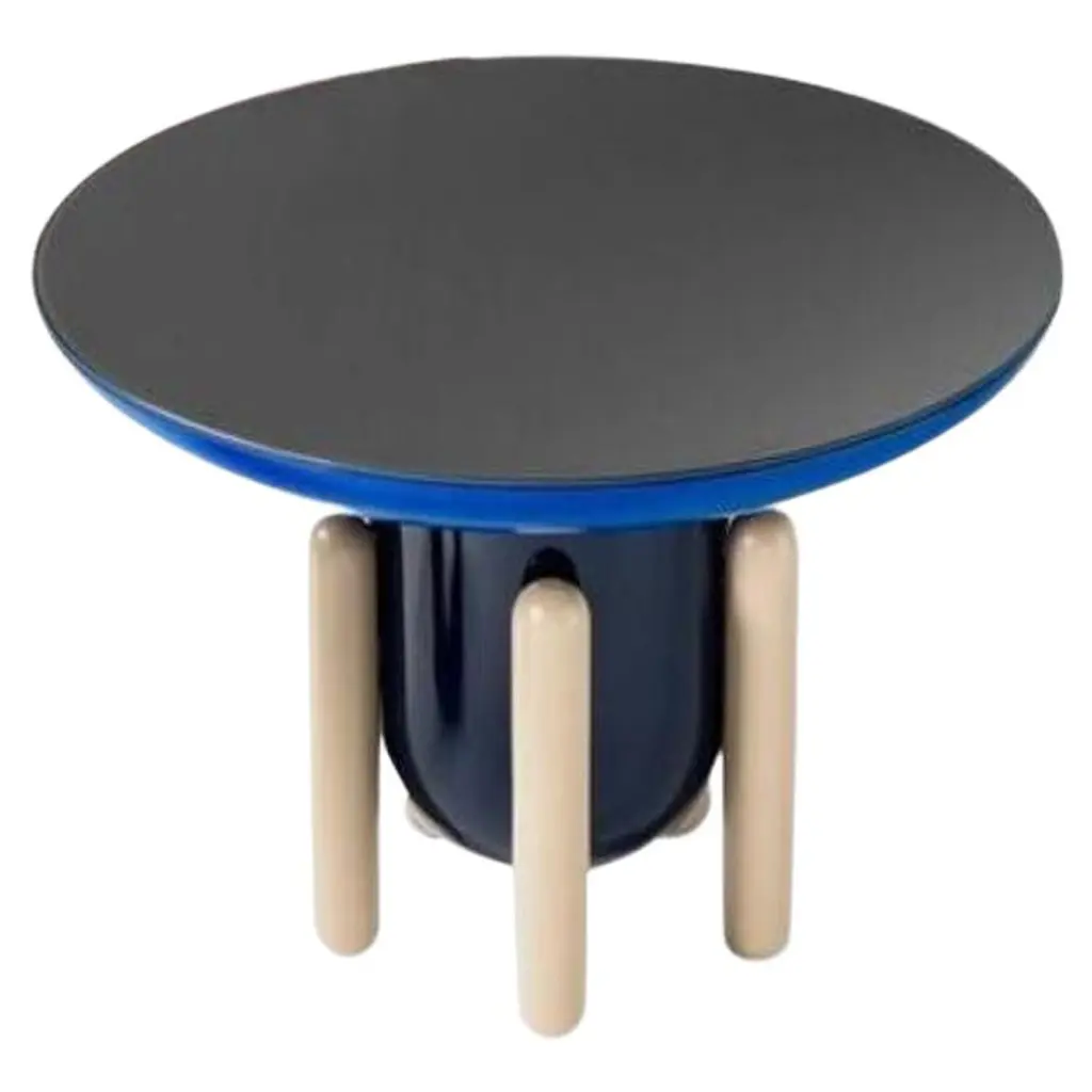 Add both storage and style to interiors with the smooth, modern lines of the Explorer Large Round Side Table 2 from BD Barcelona. A luxurious and sculptural design from the mind of Madrid-born artist Jaime Hayon, it’s made in Spain and ascends from felt glides along solid alder legs, placing a curving fiberglass body above. Inspired by the childlike wonder of a bowl of Jelly Beans, its smooth colors draw the eye, contrasting the colors of the legs with the boldness of the body and upward-curving tabletop.