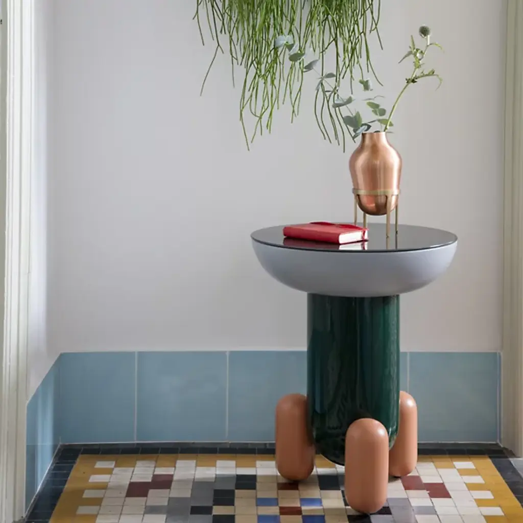 Give your living space a jubilant aesthetic with the Explorer Small Round Side Table 1 from BD Barcelona. Designed by Jamie Hayon, the legs of your side table are formed in resemblance of jellybeans. Explorer gives your interior décor a contemporary look. This furnishment is composed of glass, fiberglass, and solid wood, illustrating fine Spanish craftsmanship of the highest caliber. Your table can be easily placed on tiled floors. The rounded half-sphere tabletop is well-suited for displaying your favorite book.