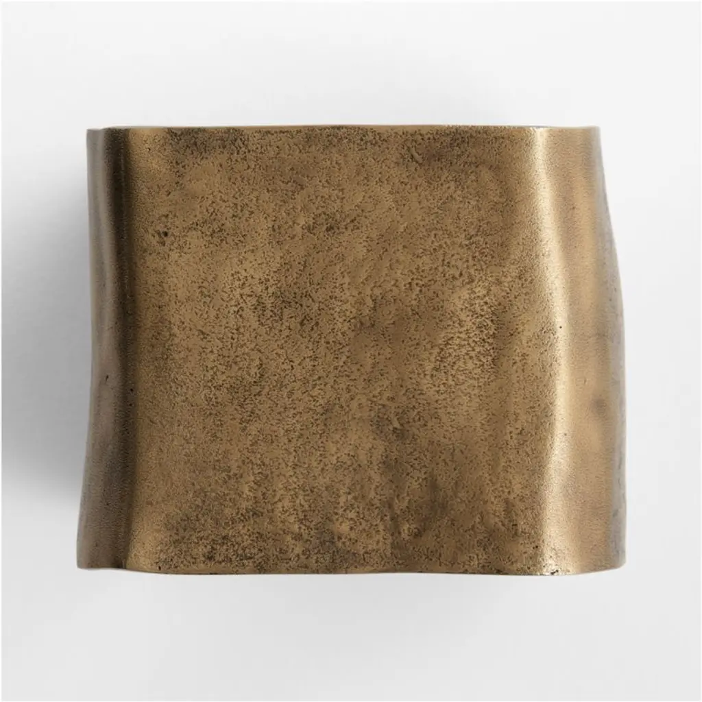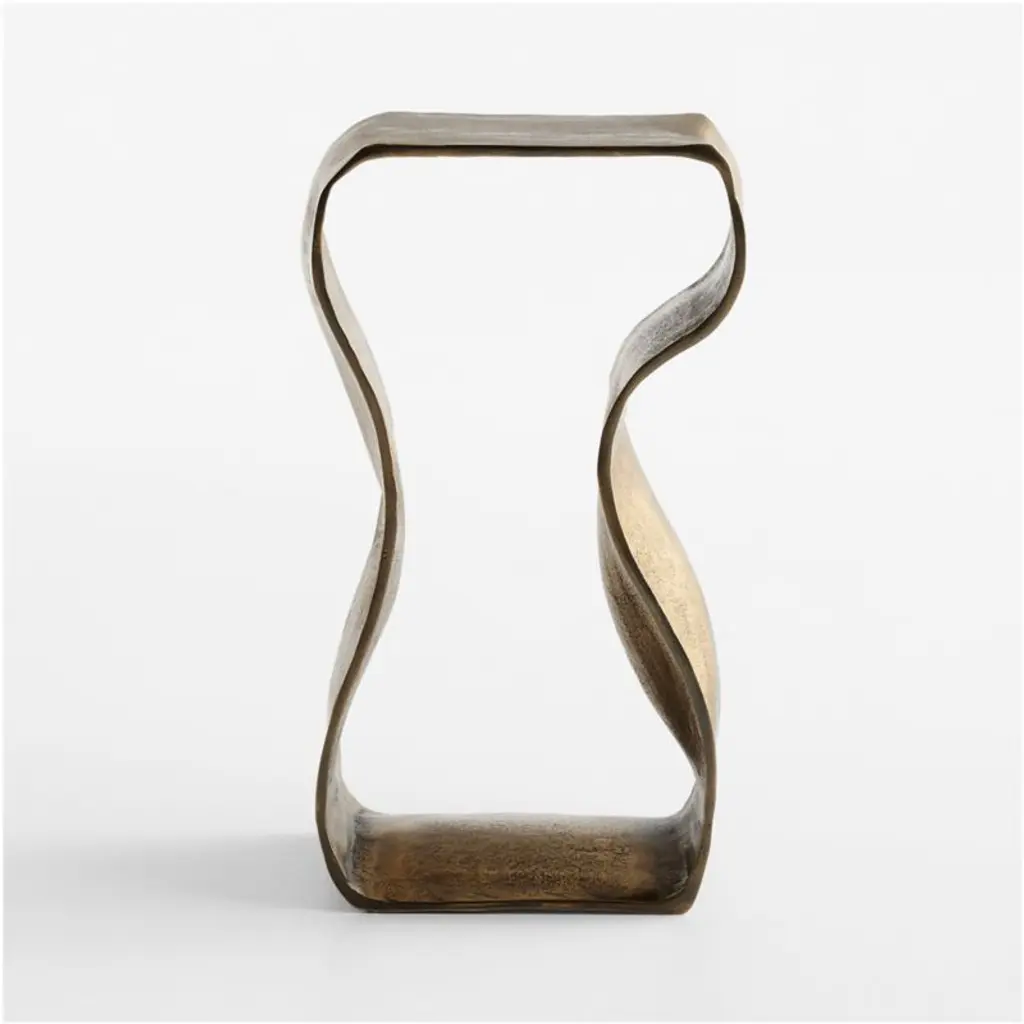 An undulating ribbon of cast aluminum gives fluid form to our Expressionist drink table. Designed as a continuous loop, the table shows off its organic swells and indentations with warm burnished brass finish. This eye-catching accent table tucks next to a sofa as a handy surface to set down a glass while also adding a dash of movement and artistic flair to the entire room.
