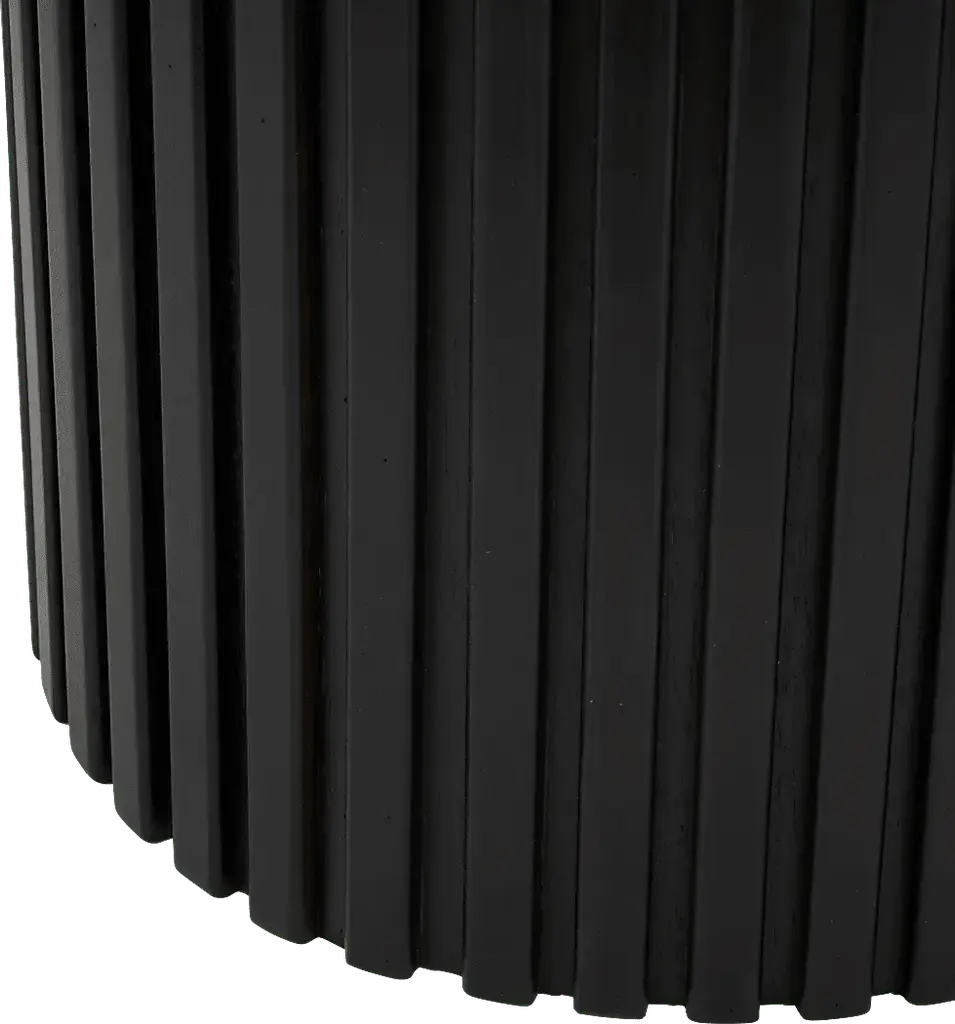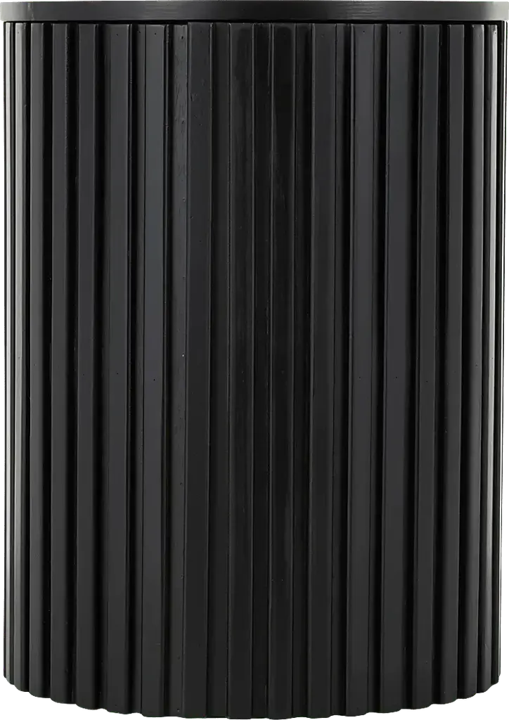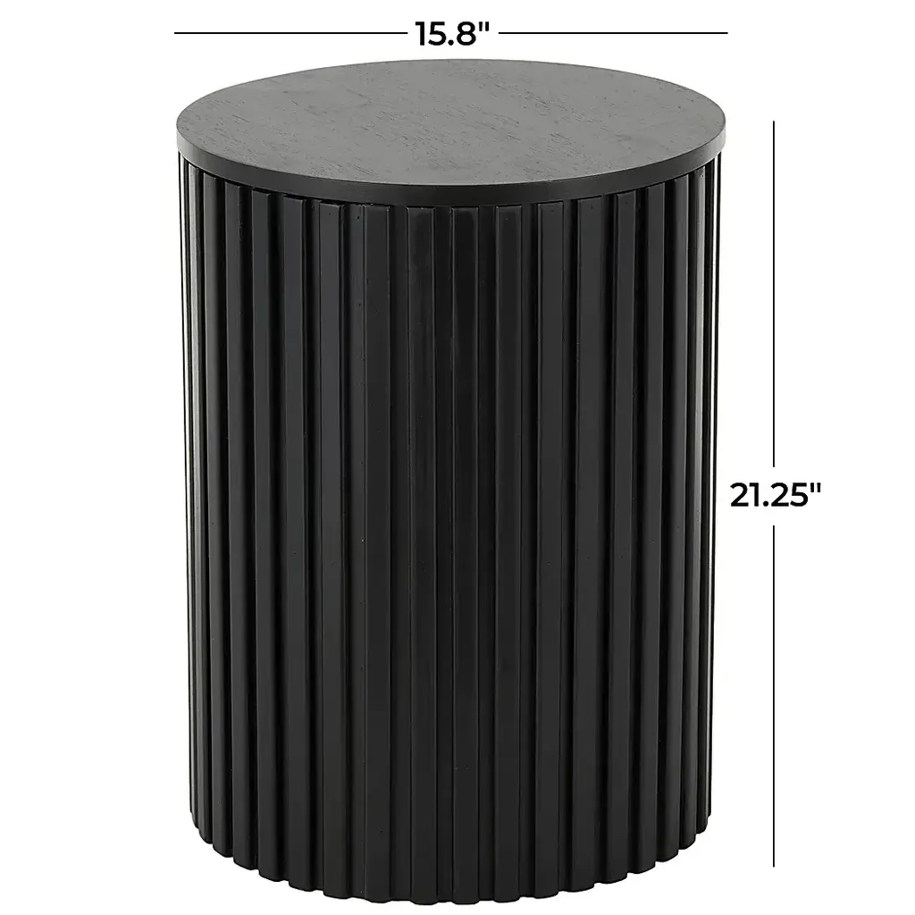 Inspired by sleek elegance and clean lines, a minimalistic design offers effortless luxury with monochromatic tones and bold, angular structures. The Eziro is crafted from high-quality wood and MDF, the brown side end accent table exudes durability and charm. The round table boasts a rich, oiled brown finish that enhances its natural beauty. The wood end table features ribbed detailing and a slatted base for added style. Customer assembly is required.