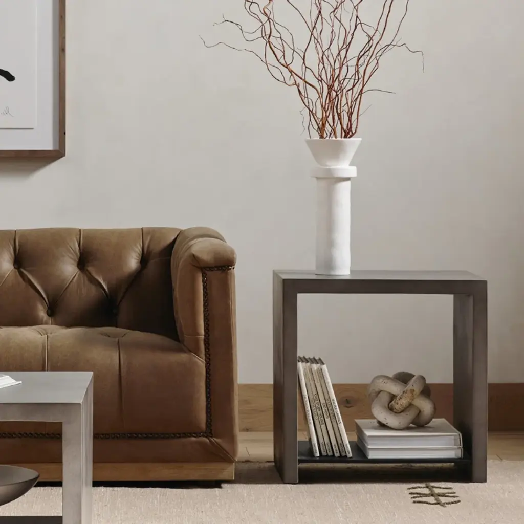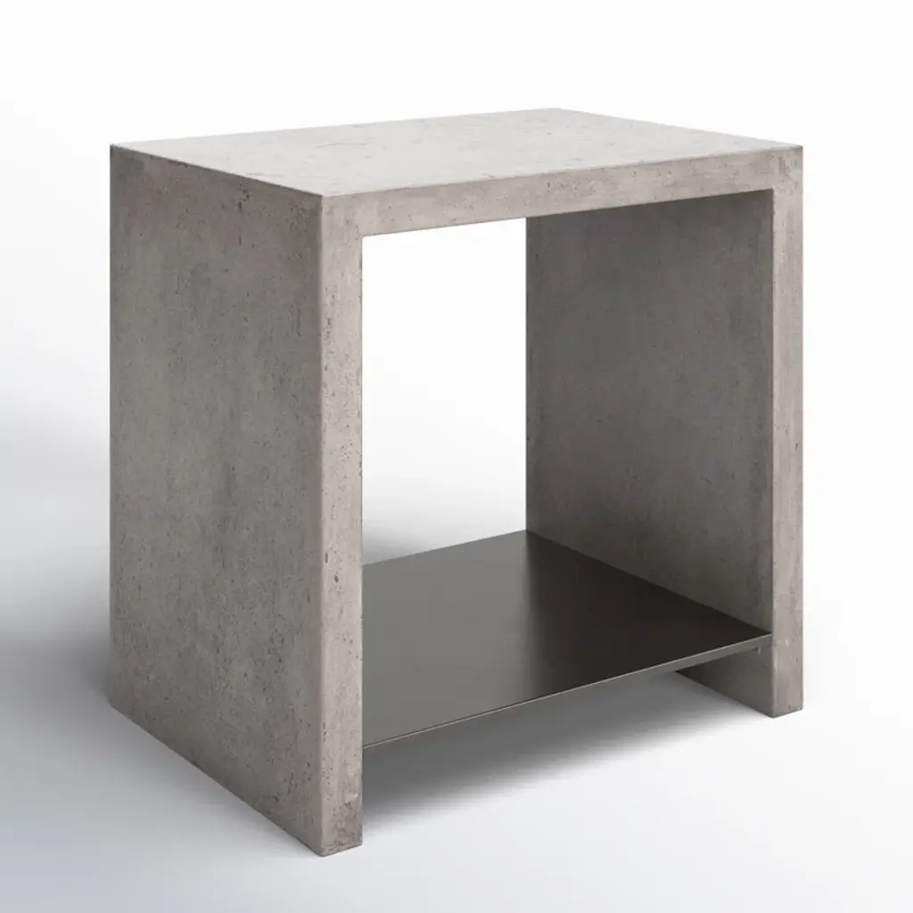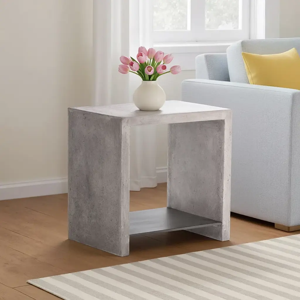 Elevate your living space with this sleek and modern end table. Its rectangular shape and concrete construction make it a versatile addition to any room. The table top offers ample space for your favorite books, plants, or decorative items, while the lower shelf provides extra storage. Designed for home use, this end table brings a touch of urban sophistication without compromising on functionality. Just remember, it's not meant for commercial or non-residential settings. So, sit back, relax, and enjoy your stylish new piece!