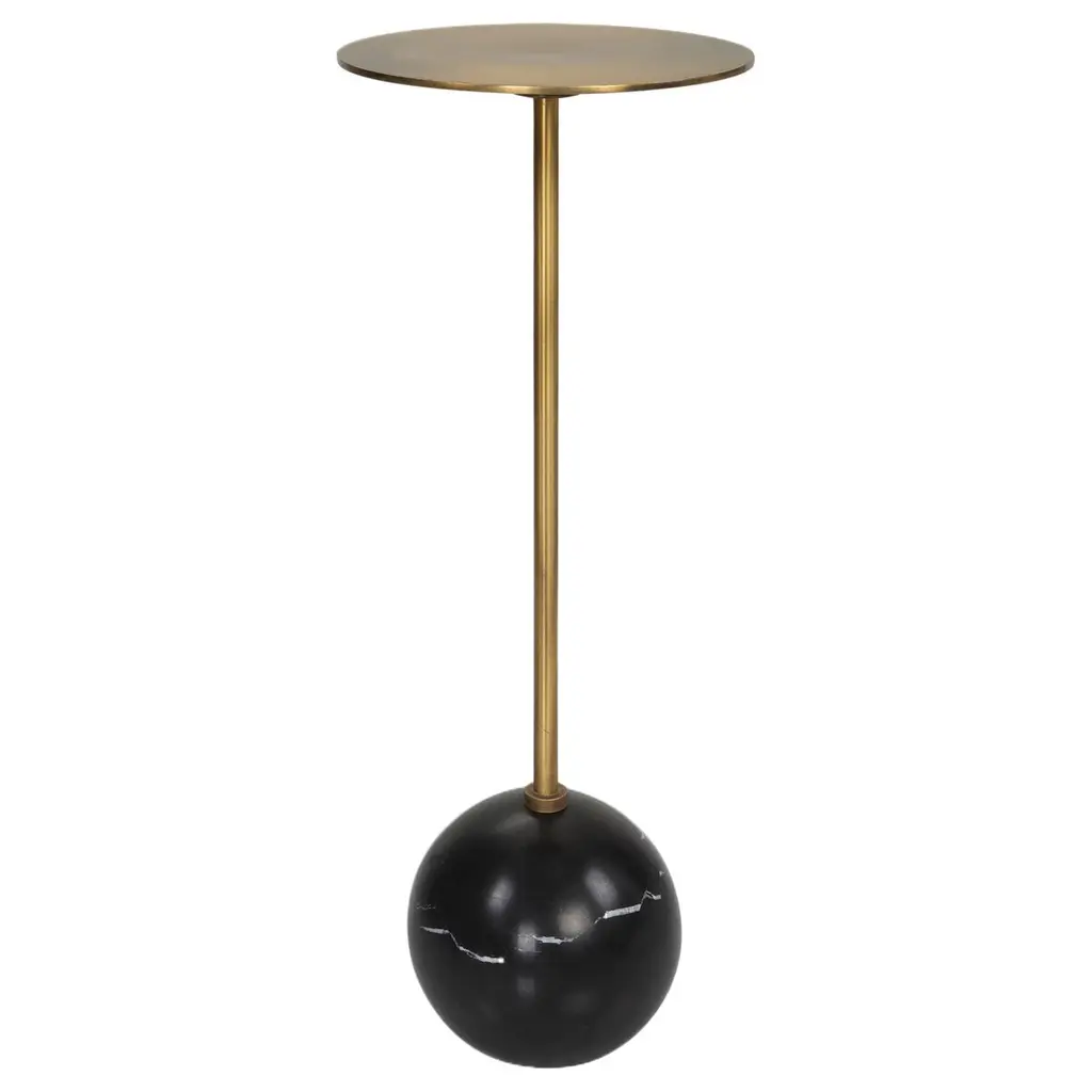 The Facet Martini Table is a contemporary design statement with a tastefully subtle silhouette. A geometric base crafted from white marble supports a slender steel rod adorned in Antique Silver Leaf. A clear, rounded crystal surface completes the look of this stylish accent table.