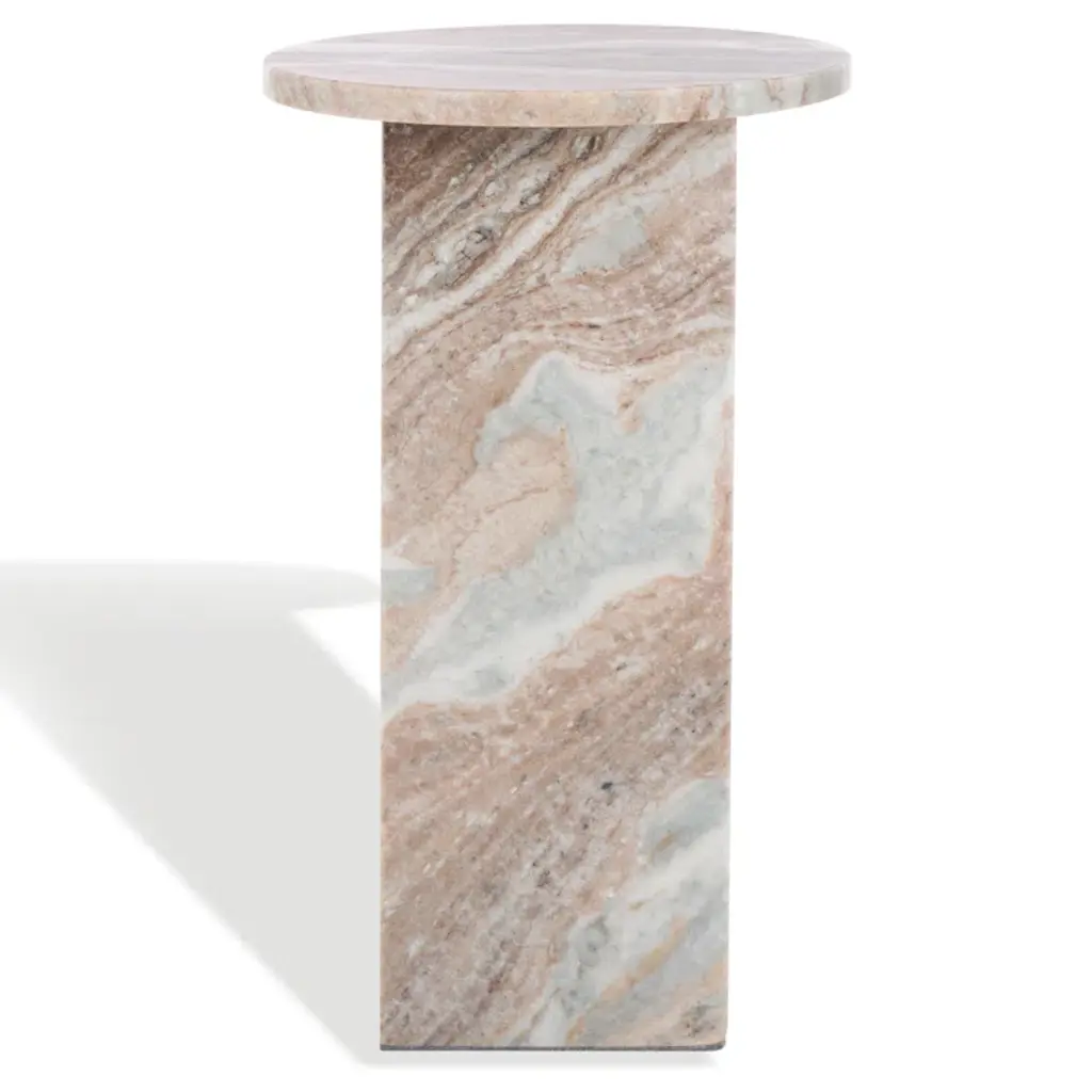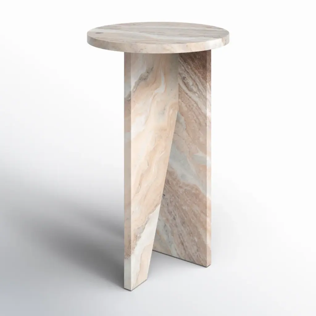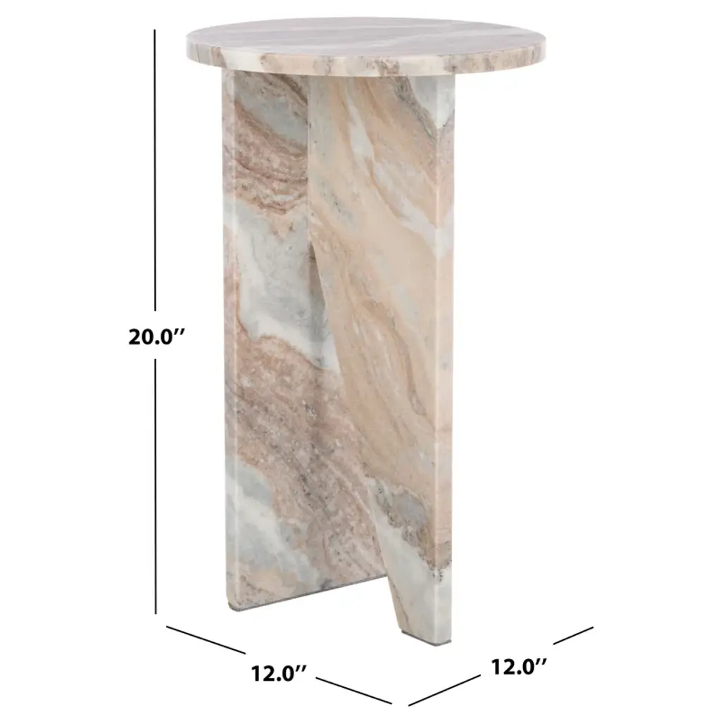 Introducing the Devlin Marble Drink Table Accent Table in a rich, luxurious brown color. This is no ordinary table - made completely of marble, its quality craftsmanship contributes to its unique allure, elegance, and durability. The brown tone adds a sophisticated touch, effortlessly merging with your decor and enhancing its appeal. Whether you're hosting an intimate gathering or relaxing alone, this drink table accent table is the perfect perch for your beverage. Upgrade your space, add a touch of class and enjoy the unrivalled beauty that only Devlin's Brown Marble Drink Table can offer. Has your living room met its match yet?
