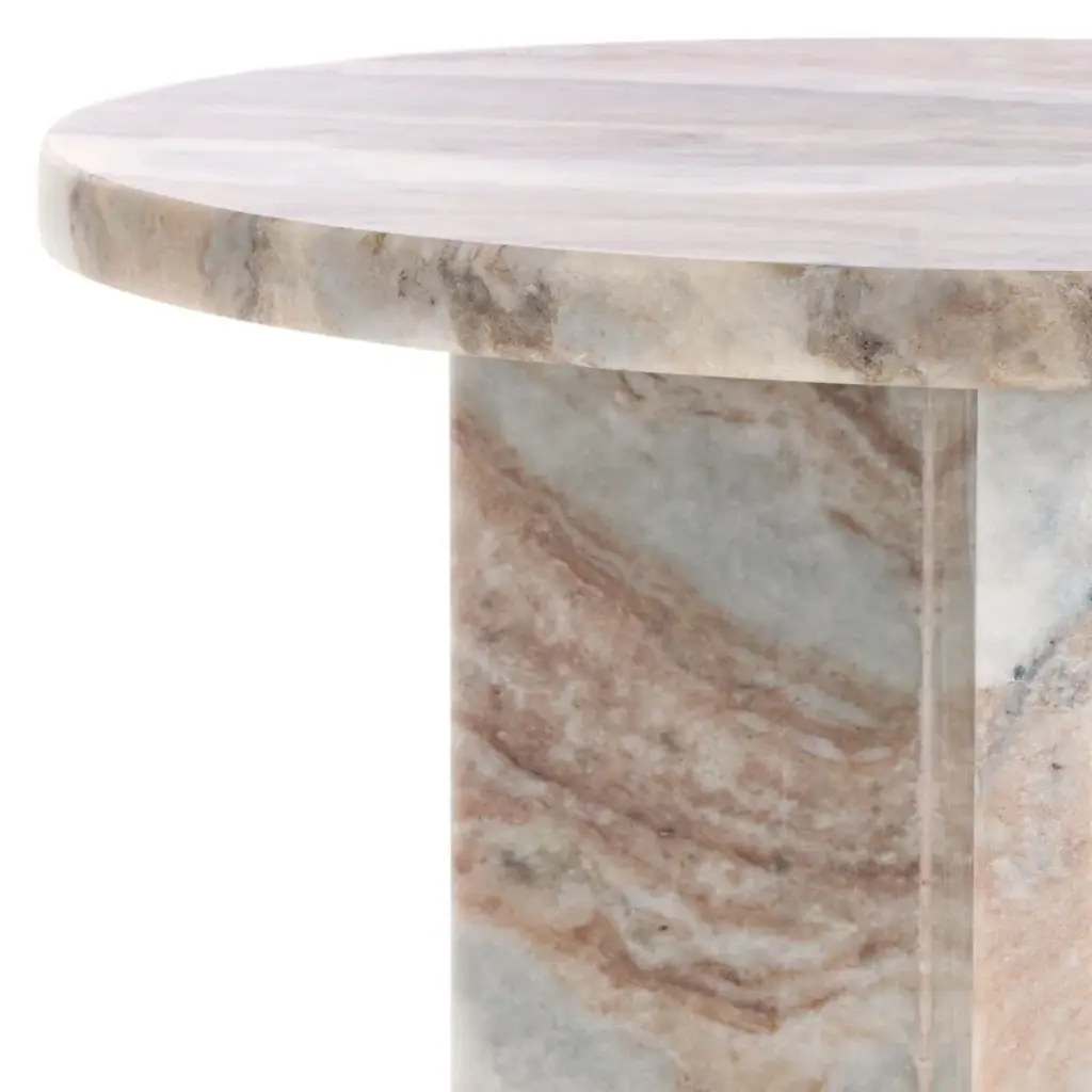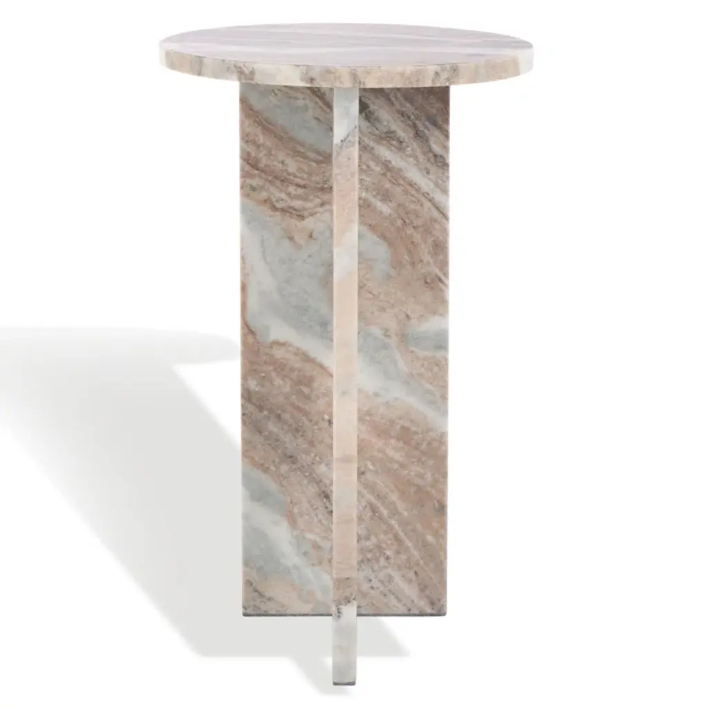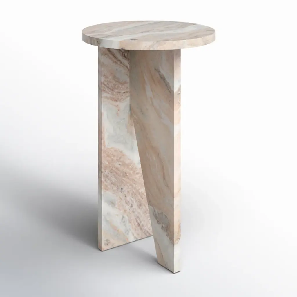 Introducing the Devlin Marble Drink Table Accent Table in a rich, luxurious brown color. This is no ordinary table - made completely of marble, its quality craftsmanship contributes to its unique allure, elegance, and durability. The brown tone adds a sophisticated touch, effortlessly merging with your decor and enhancing its appeal. Whether you're hosting an intimate gathering or relaxing alone, this drink table accent table is the perfect perch for your beverage. Upgrade your space, add a touch of class and enjoy the unrivalled beauty that only Devlin's Brown Marble Drink Table can offer. Has your living room met its match yet?