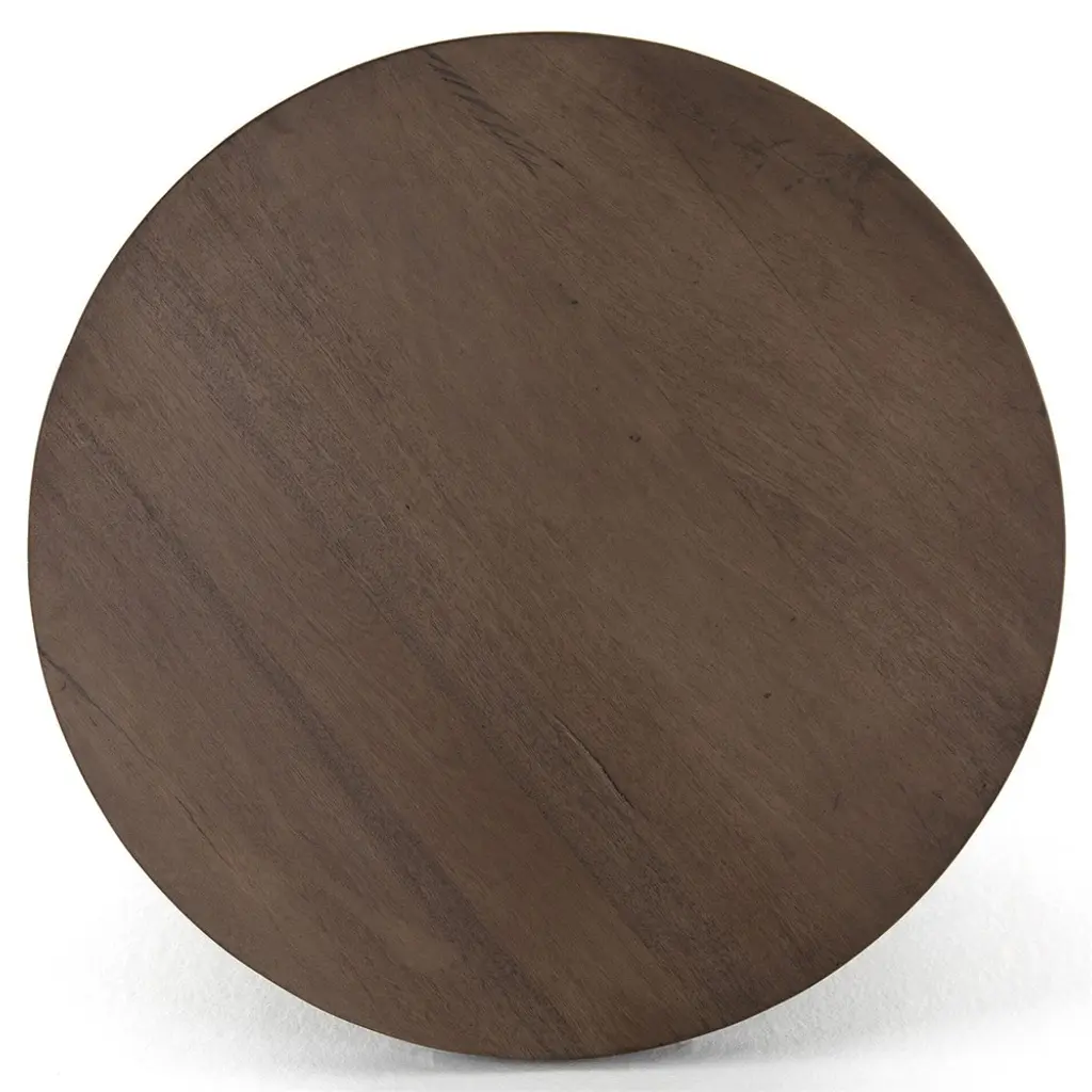 Farvald Mid Century Modern Dark Brown Reclaimed Wood Round End Table