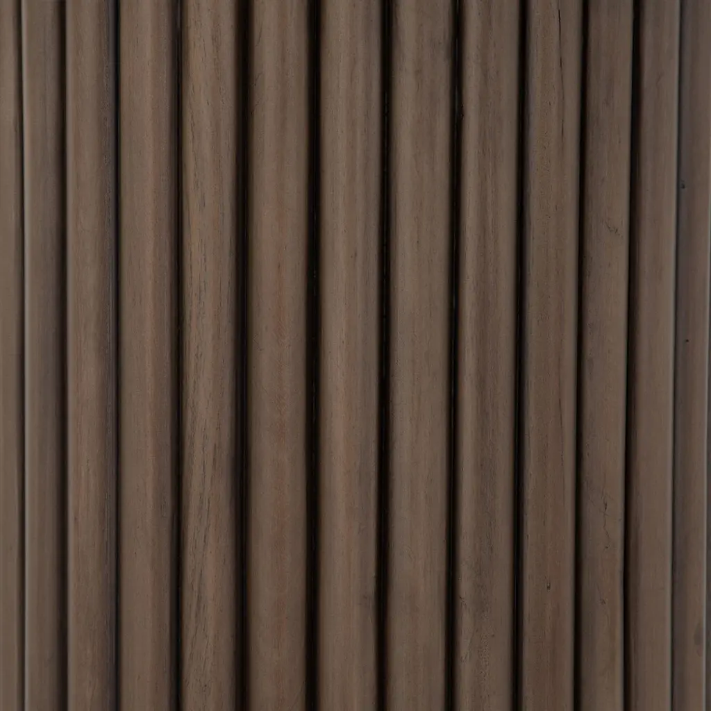 Organic materials are sculpted to perfection on the Farvald end table. Crafted from mixed reclaimed wood and finished in ashen brown, a rounded top and base flank the cylindrical form. Dramatic vertical reeding adds visual interest to this otherwise understated piece.