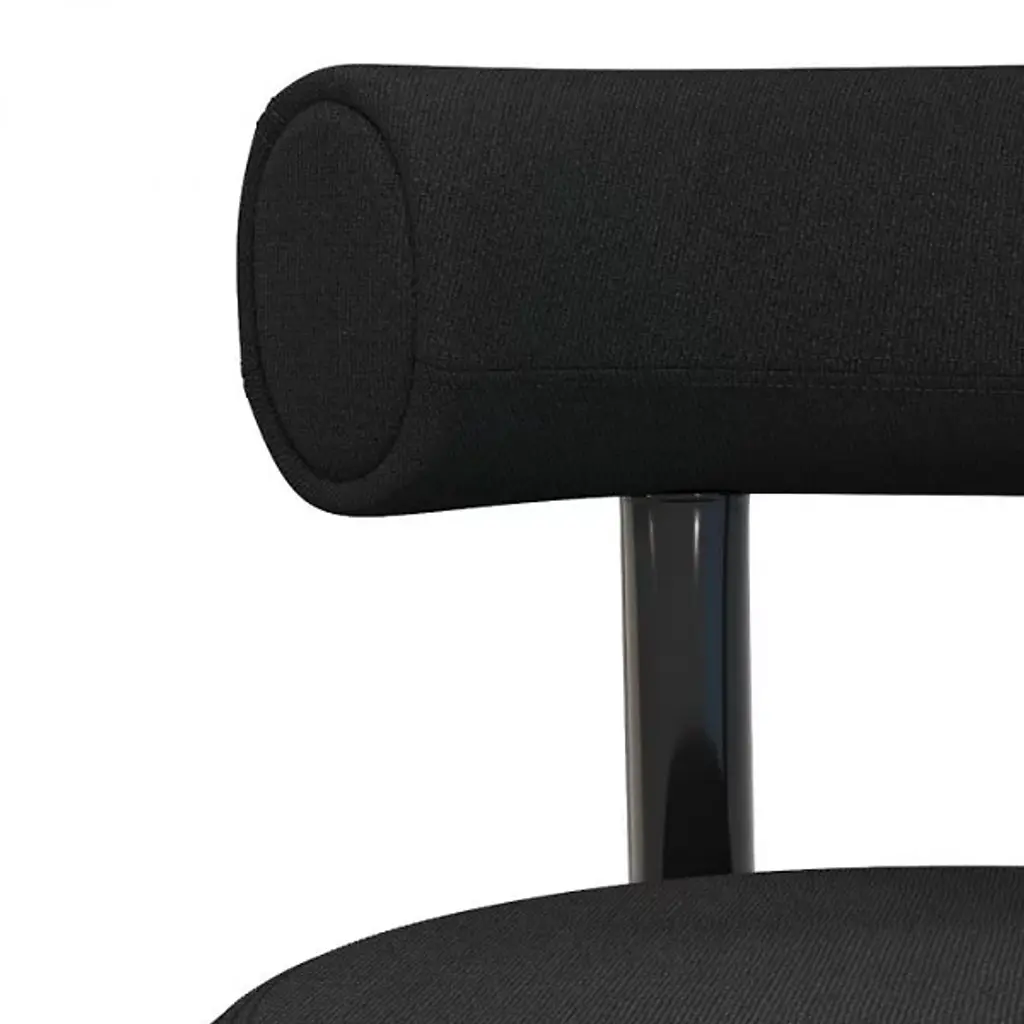 Make a stylish addition to café spaces, tall side tables, or breakfast bars alike with the upward-reaching and open design of the Fat Barstool from Tom Dixon. A well-upholstered construction braced by four tall metal legs, it places a plushly-padded seat and curving, padded back done in molded foam, and surfaced in soft woolen fabric. Excellent as a paired arrangement, this contrasts elegantly with the glossy metal surfaces below it, adding visual engagement to physical comfort.