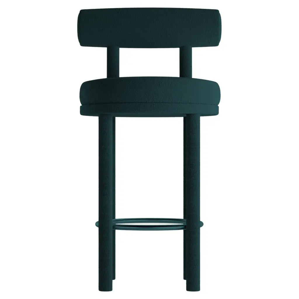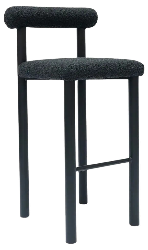Make a stylish addition to café spaces, tall side tables, or breakfast bars alike with the upward-reaching and open design of the Fat Barstool from Tom Dixon. A well-upholstered construction braced by four tall metal legs, it places a plushly-padded seat and curving, padded back done in molded foam, and surfaced in soft woolen fabric. Excellent as a paired arrangement, this contrasts elegantly with the glossy metal surfaces below it, adding visual engagement to physical comfort.
