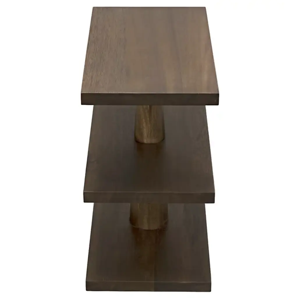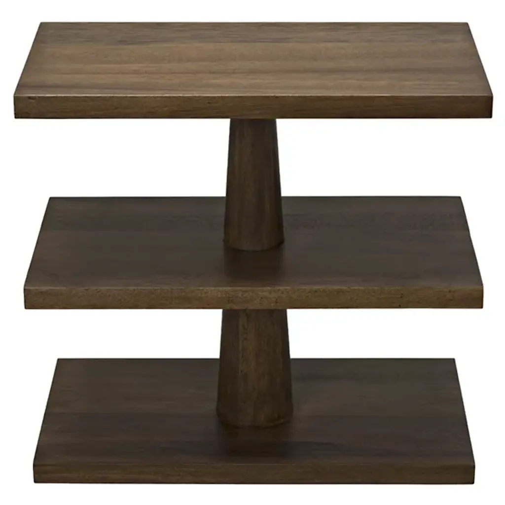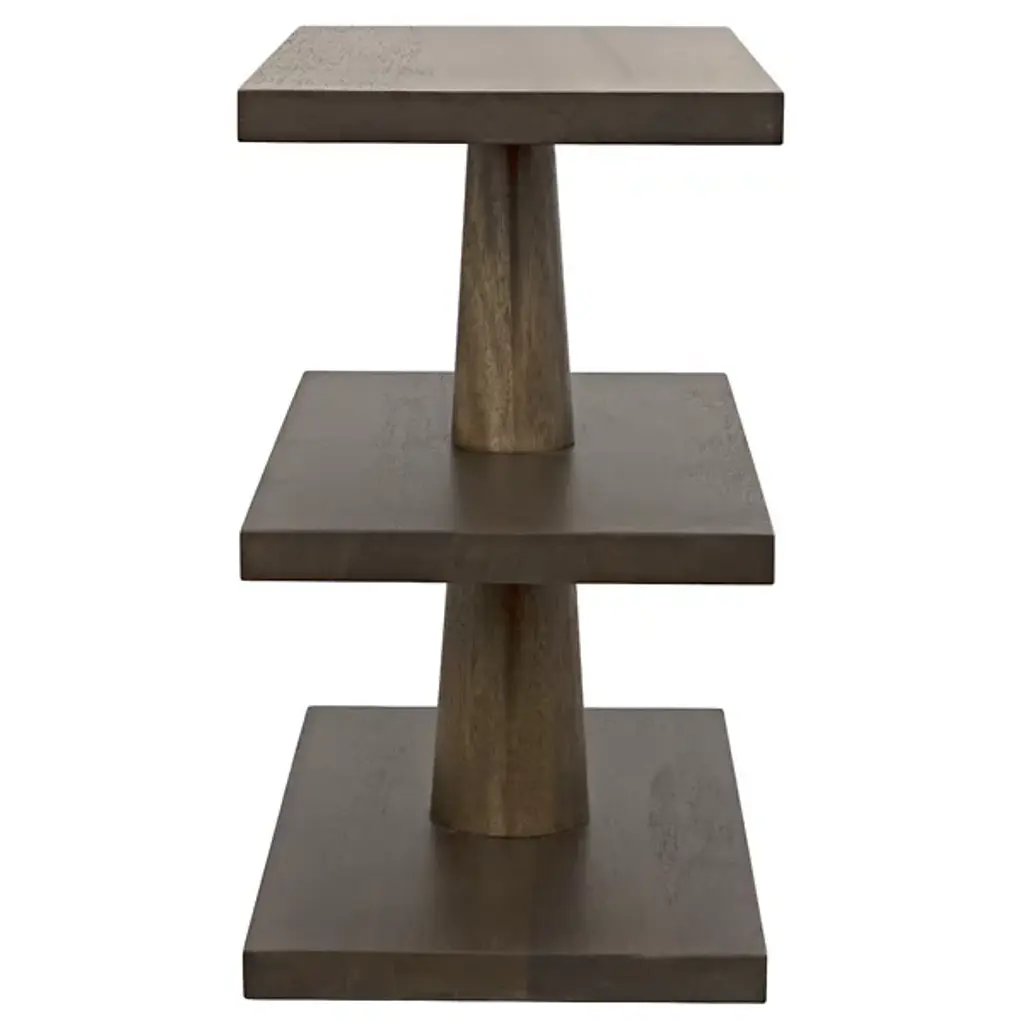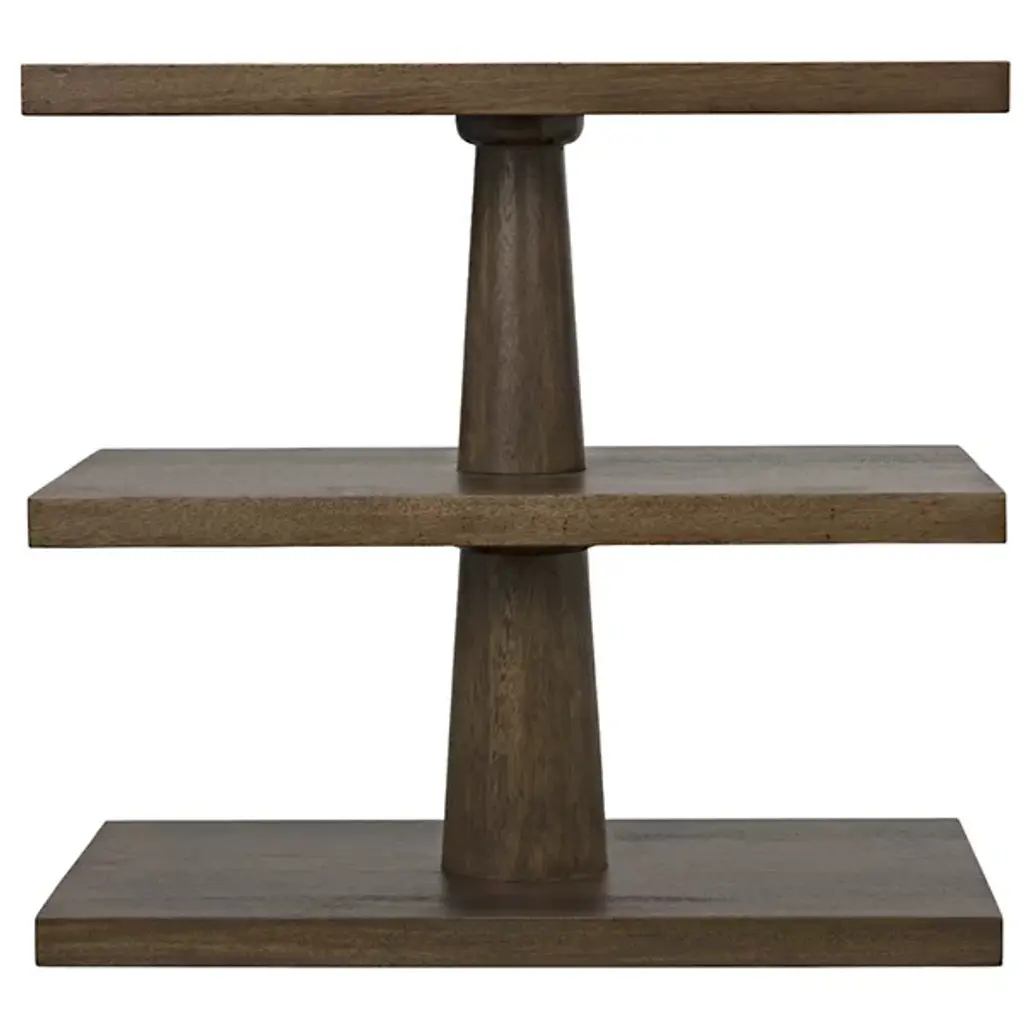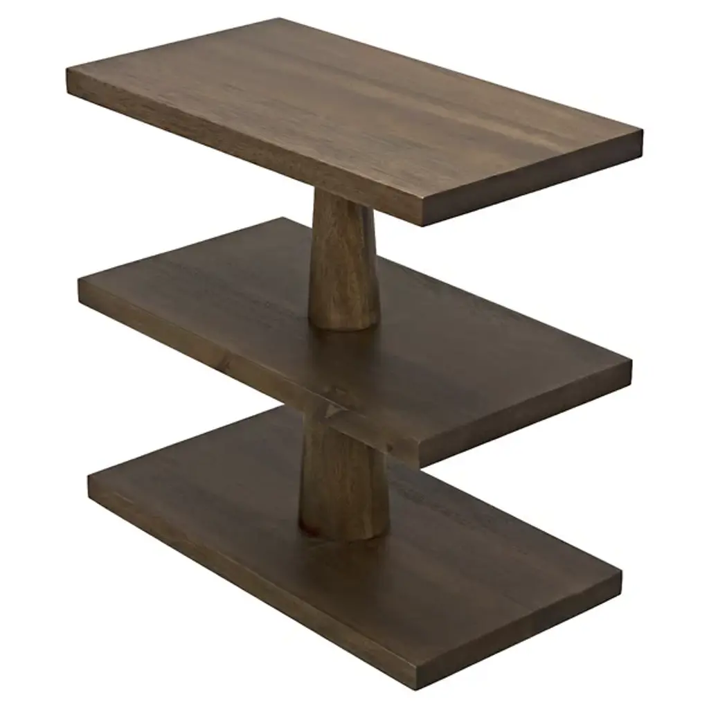 The Fatima Side Table from Noir evokes the simplicity of a child's imaginative creation, yet it has been expertly handcrafted from high-quality walnut. The hand-finished design celebrates the natural beauty and unique grain of the wood, enhancing its organic appeal. Featuring three variegated shelves, the table offers intriguing display options for books, decorative items, or other treasures. Its playful yet sophisticated design makes this side table a standout piece that blends functionality and artistic craftsmanship into any room.