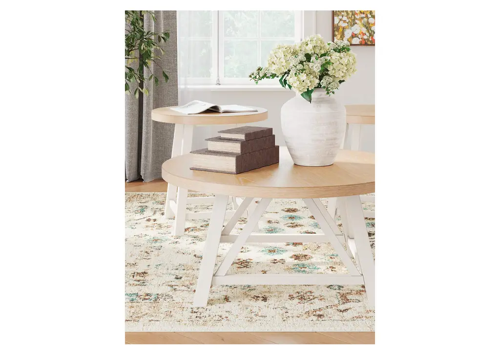Invite easy-breezy style in with the Fawndell occasional table set. Complete with a coffee table and matching end tables, this stylish two-tone set fits right into modern farmhouse and coastal settings. Simply stage and arrange around your existing furniture—their rounded design pairs well with smaller sofas and sectionals, so you can make the most of your space. Weight 88.000 lbs. (39.6kgs.)