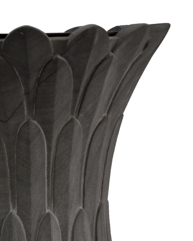 Introducing the Feathers Art Nouveau Side Tables in Agra Grey Stone - a mesmerizing set of art nouveau side tables handcrafted in India. Designed by Stephanie Odegard, these art nouveau side tables draw inspiration from the timeless beauty of Art Nouveau design, resulting in a stunning blend of aesthetics and craftsmanship.Measuring 14"" x 14"" x 17"" in size, these art nouveau side tables showcase meticulous attention to detail. They are expertly crafted from locally sourced Agra Grey Stone, known for its durability and natural elegance. The stone is skillfully hand-carved by artisans, who have tastefully incorporated an intricate leaf motif reminiscent of Art Nouveau style.The Feathers Art Nouveau Side Tables are available in various other exquisite stones, including Agra White Marble, Jaisalmer Stone, Rainbow Teak-wood Stone, Katni Stone, Black Beslana, and Agra Grey. Each stone option adds its own unique character and aesthetic appeal to these art nouveau side tables, allowing you to choose the perfect pieces to complement your interior design.To achieve a more contemporary and light appearance, the arrangement of the carved leaf motif has been thoughtfully toned down, giving the art nouveau side tables a refined and sophisticated look. The semi-matte finish further enhances the beauty of the Agra Grey Stone, adding a touch of understated elegance.The Feathers Art Nouveau Side Tables serve as both functional furniture pieces and captivating works of art. They effortlessly elevate any space, be it a living room, bedroom, or hallway, with their exquisite design and cultural significance. Inspired by the temple carvings in and around Udaipur, these tables encapsulate the rich artistic heritage of India.Stephanie Odegard's passion for blending traditional craftsmanship with contemporary aesthetics is evident in every aspect of these art nouveau side tables. Immerse yourself in the allure of Art Nouveau design and experience the beauty of Indian craftsmanship with the Feathers Art Nouveau Side Tables in Agra Grey Stone. Add a touch of timeless elegance to your home with these remarkable pieces that will undoubtedly be conversation starters in any room."