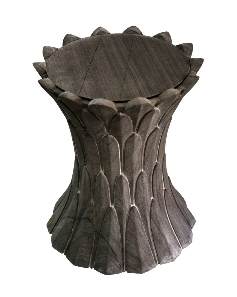 Feathers Art Nouveau Side Table In Agra Grey Stone Designed By Stephanie Odegard