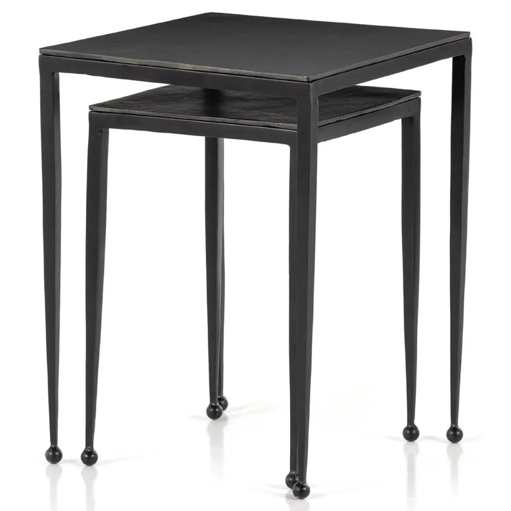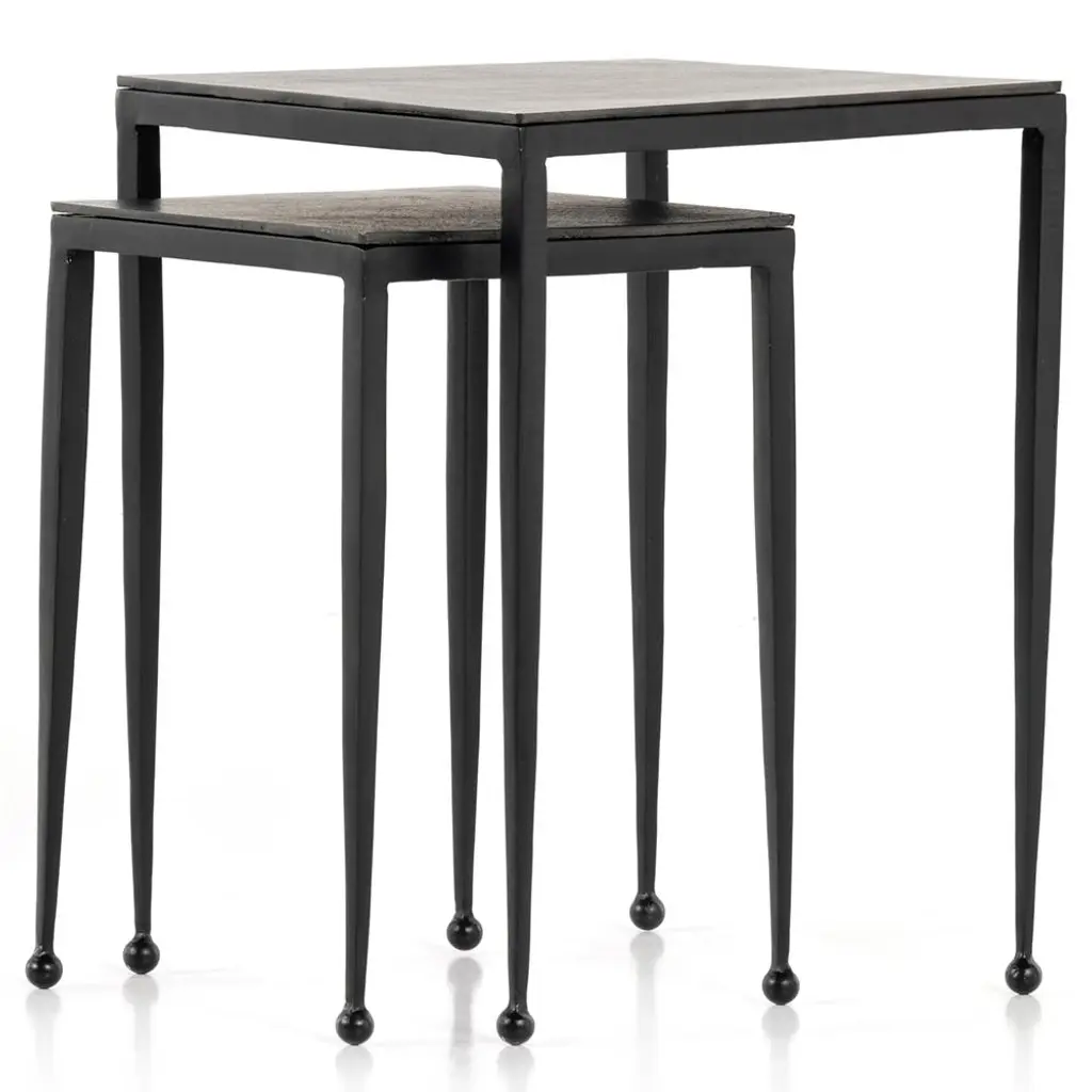 Effortlessly chic and versatile, our Fector Industrial Black Aluminum Top Matte Iron Frame Square Nesting End Table set makes a stylish addition to your living room, den, or bedroom—anywhere extra surface space is needed. Crafted from matte black-finished iron with a raw black-finished aluminum top, each streamlined piece features tapered legs and rounded feet. These industrial end tables can be nested together or styled separately.