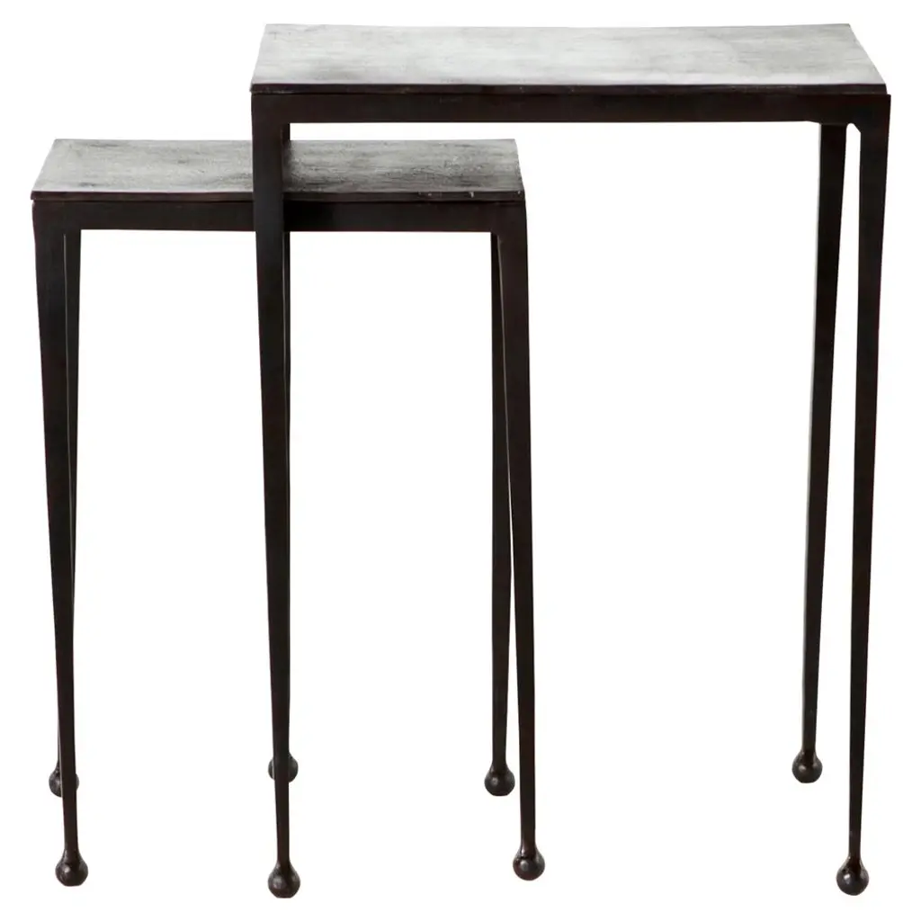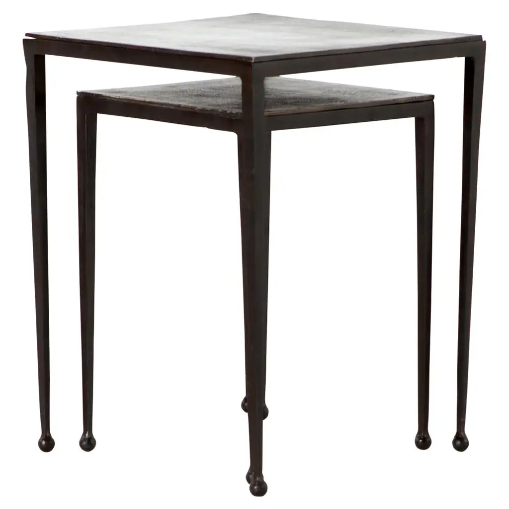 Effortlessly chic and versatile, our Fector Industrial Rust Brown Aluminum Top Black Iron Square Nesting End Table set makes a stylish addition to your living room, den, or bedroom—anywhere extra surface space is needed. Crafted from antique brown-finished iron with an antique rust-finished aluminum top, each streamlined piece features tapered legs and rounded feet. These industrial end tables can be nested together or styled separately.